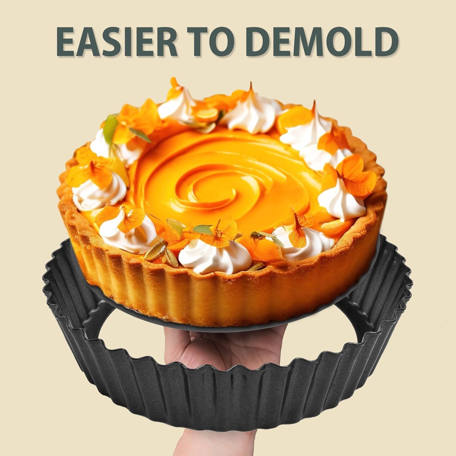- Sturdy and Removable Design:Due to thickened heavy-duty steel, these tart pans are more firm and not easy to deform.Unlike other pie plates, with our detachable bottom, allowing you much easier to take out of the pie without marring the beautiful crust.