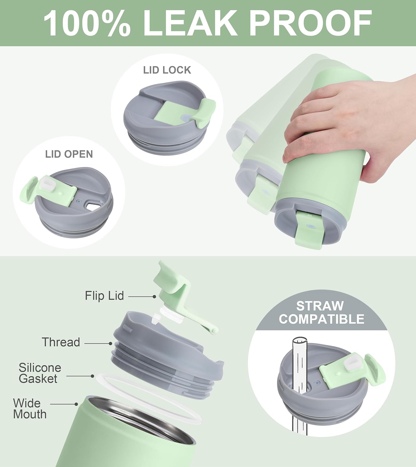 SUNWILL Travel Coffee Mug with Lid, Stainless Steel Coffee Tumbler Cups 16 oz Leakproof, Powder Coated Matcha