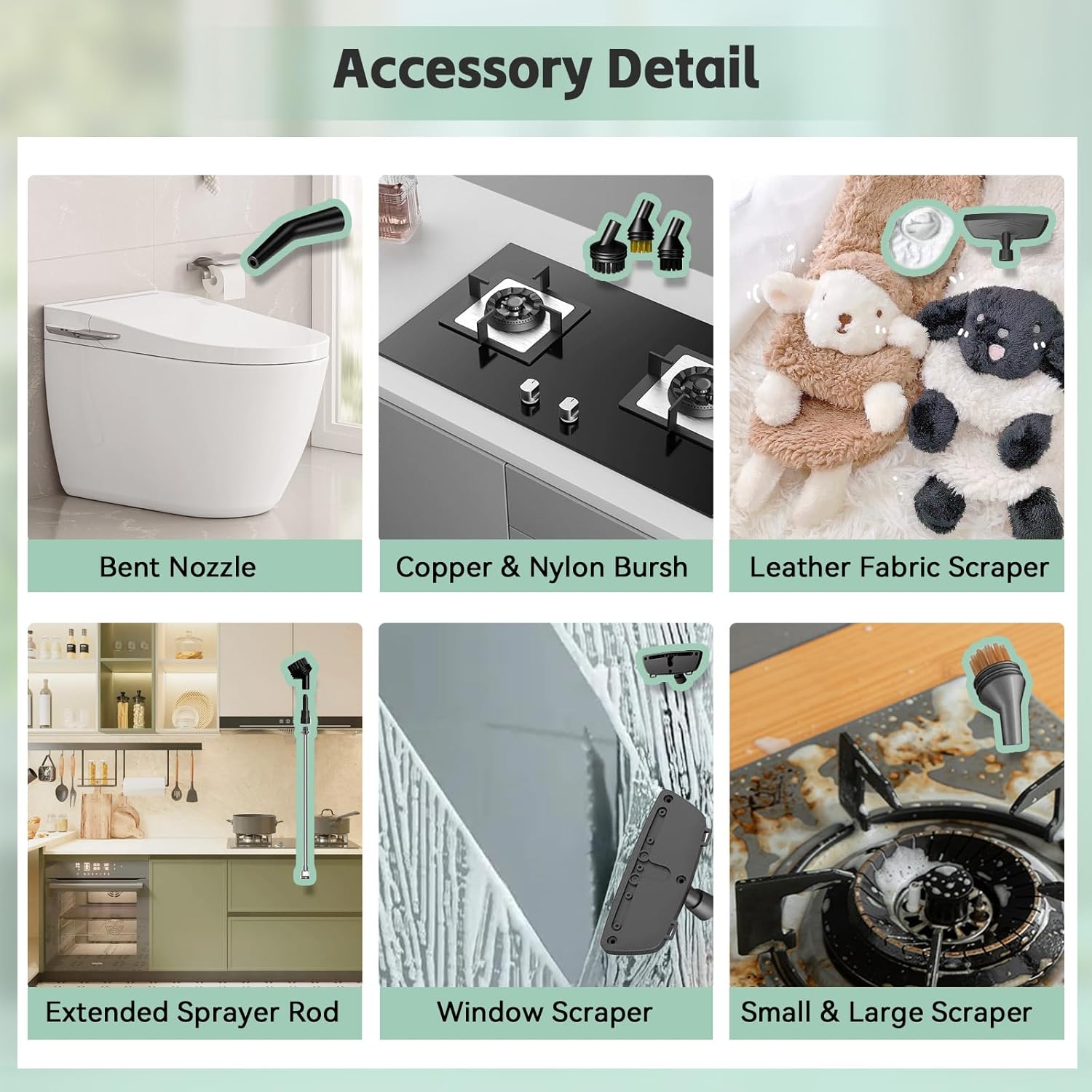 - 【Chemical-Free Friendly Steam Cleaner】Our safe and reliable handheld steam cleaner uses only water, eliminating the need for harmful chemicals. It effectively cleans all types of house cleaning and hard-to-reach areas, making it an ideal choice for families who with children, elderly members, pregnant individuals and pets
