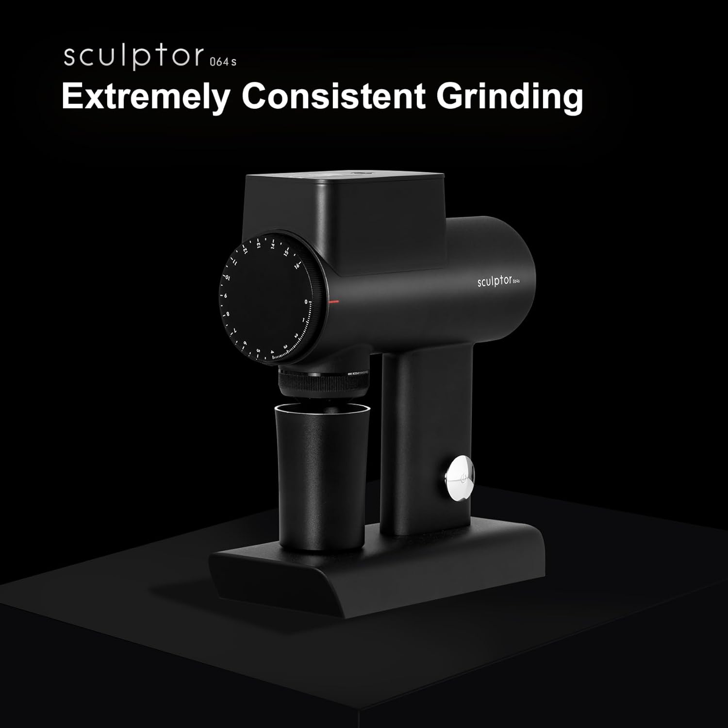 - [ Patented Rotary Knocker ] Ordinary coffee grinder lt's usually difficult to clean fines thoroughly from the grinderspout. Sculptor 064S coffee grinder designed this rotary knocker to have fines cleanedeffectively, You will just have to quick turn the knocker, andmost of the fines will be shaken off.