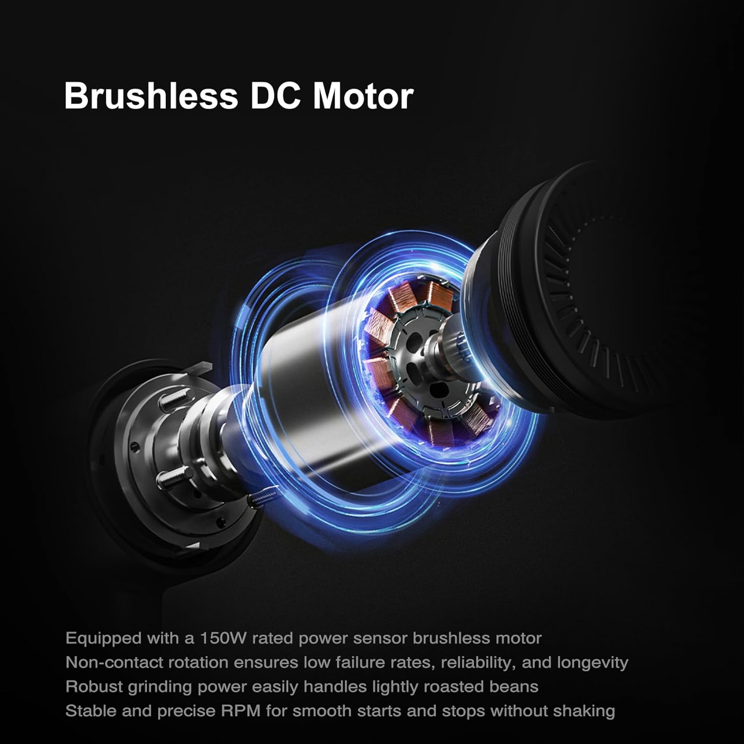 - [ Sensory Brushless Motor ] Our Burr Coffee Grinder uses a zero-friction motor with PID control and Hall elements for smoother operation, longer lifespan, and greater stability. Unlike traditional brushed motors, it doesn’t shake during use, providing a more precise grind every time.
