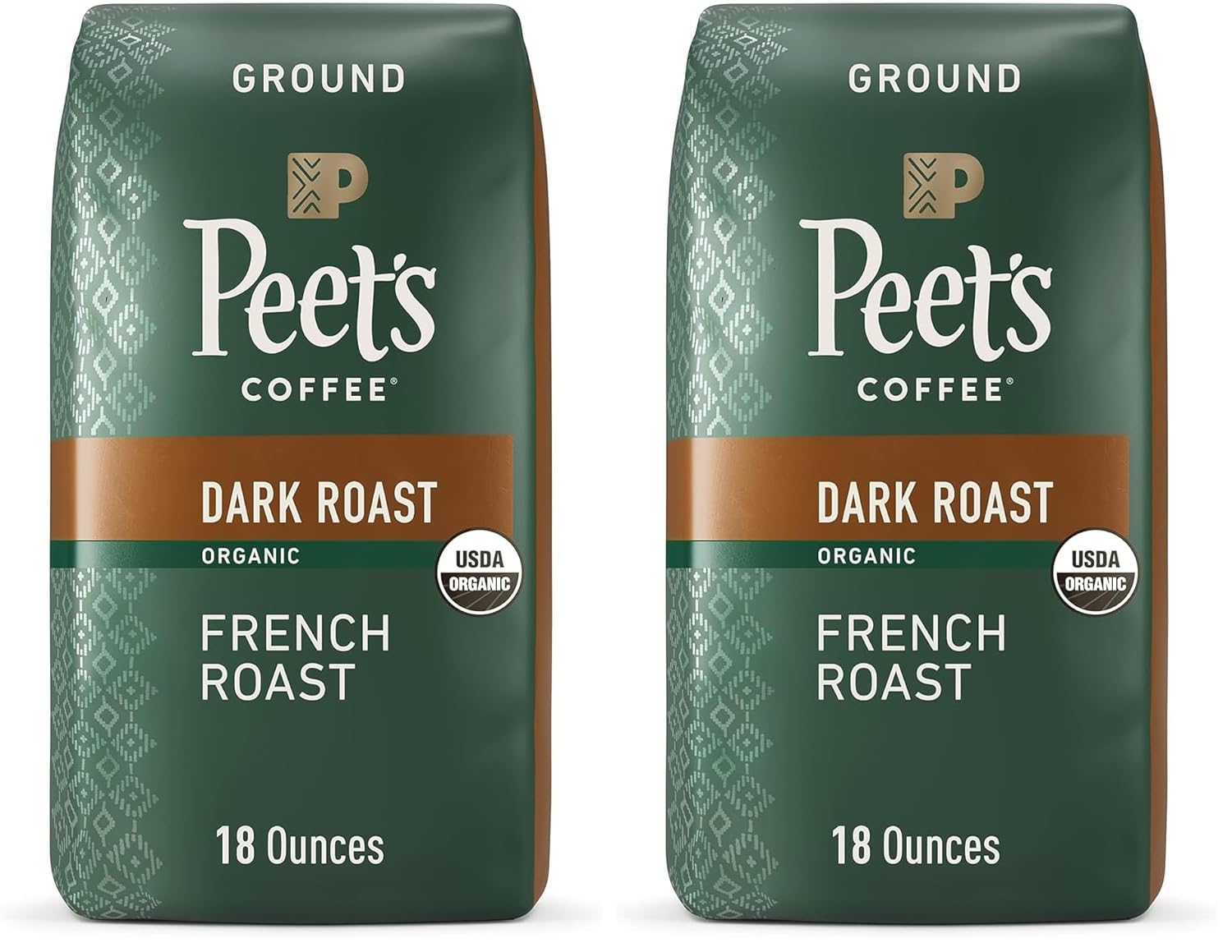 Peet's Coffee, USDA Organic Dark Roast Ground Coffee - French Roast 36 Ounces (2 Bags of 18 Ounces)