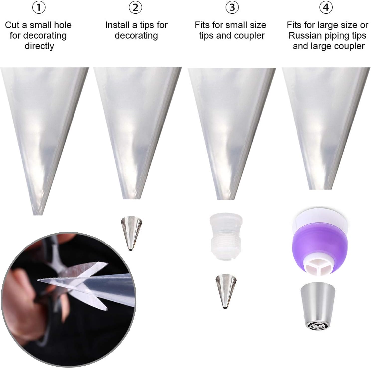 - Value Pack for All Your Baking Needs – This set includes 100PCS 12-inch pastry piping bags, making them an affordable and reliable choice for cake decoration bags, royal icing cookie decorating supplies, and disposable frosting bags. A must-have for both beginner and professional bakers