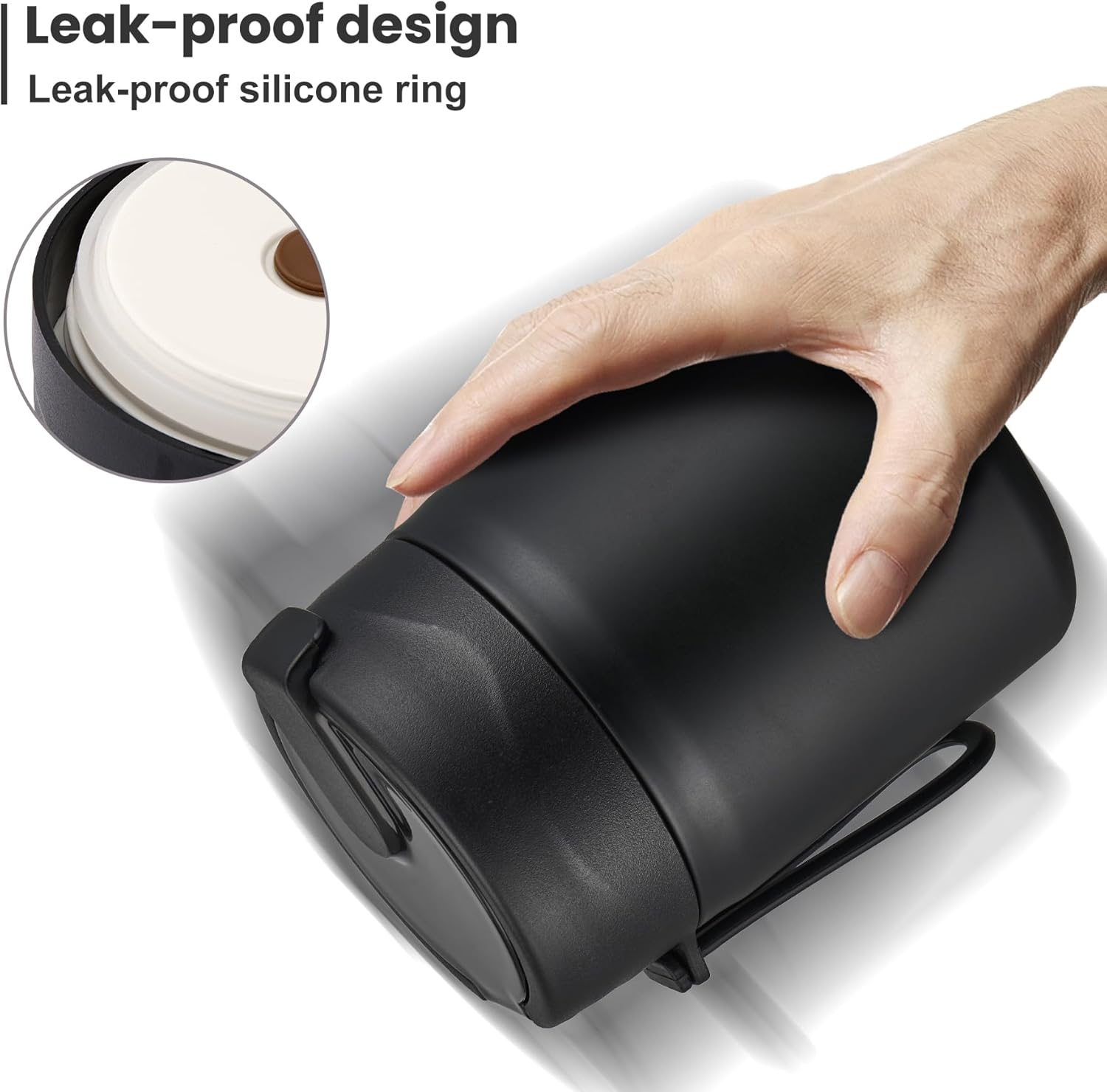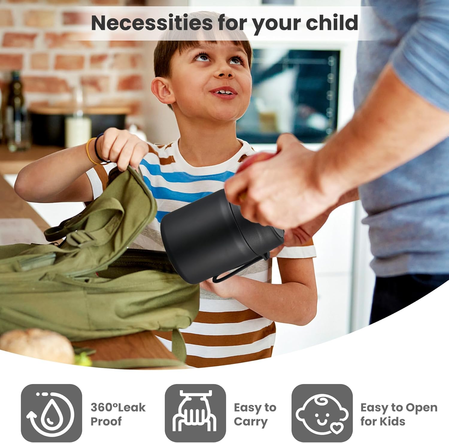 - Leak-Proof Design: Featuring an upgraded double-layer silicone seal that provides a 360° leak-proof guarantee. Rest assured that our leak-proof thermo food jar can fit in your lunch bag without worrying about spills. The insulated thermal food jar comes with a stainless steel spoon for your child's convenience.