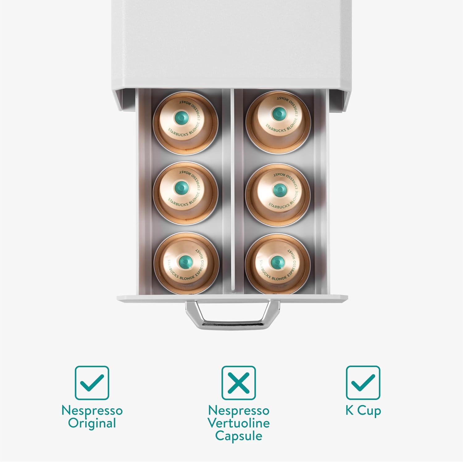 - EFFORTLESS MORNING ROUTINE: Speed up your morning coffee preparation with this coffee pod drawer. The coffee organiser station is designed to ensure your favourite coffee pods are always within reach.