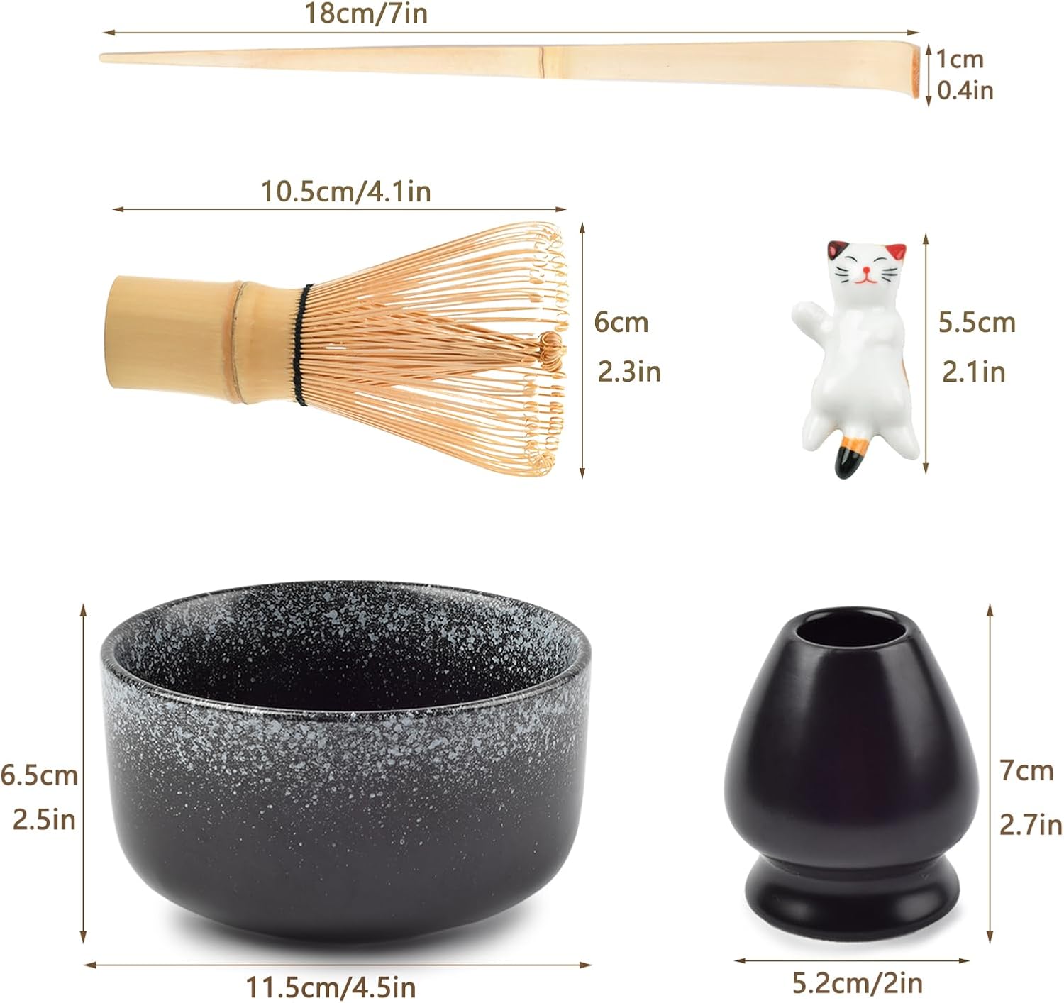 Matcha Tea Set, Matcha Accessories, Matcha Whisk Set Included Matcha Bowl, Bamboo Matcha Whisk, Scoop, Matcha Whisk Holder, Spoon Stand, Japanese Matcha Set for Beginners, Black