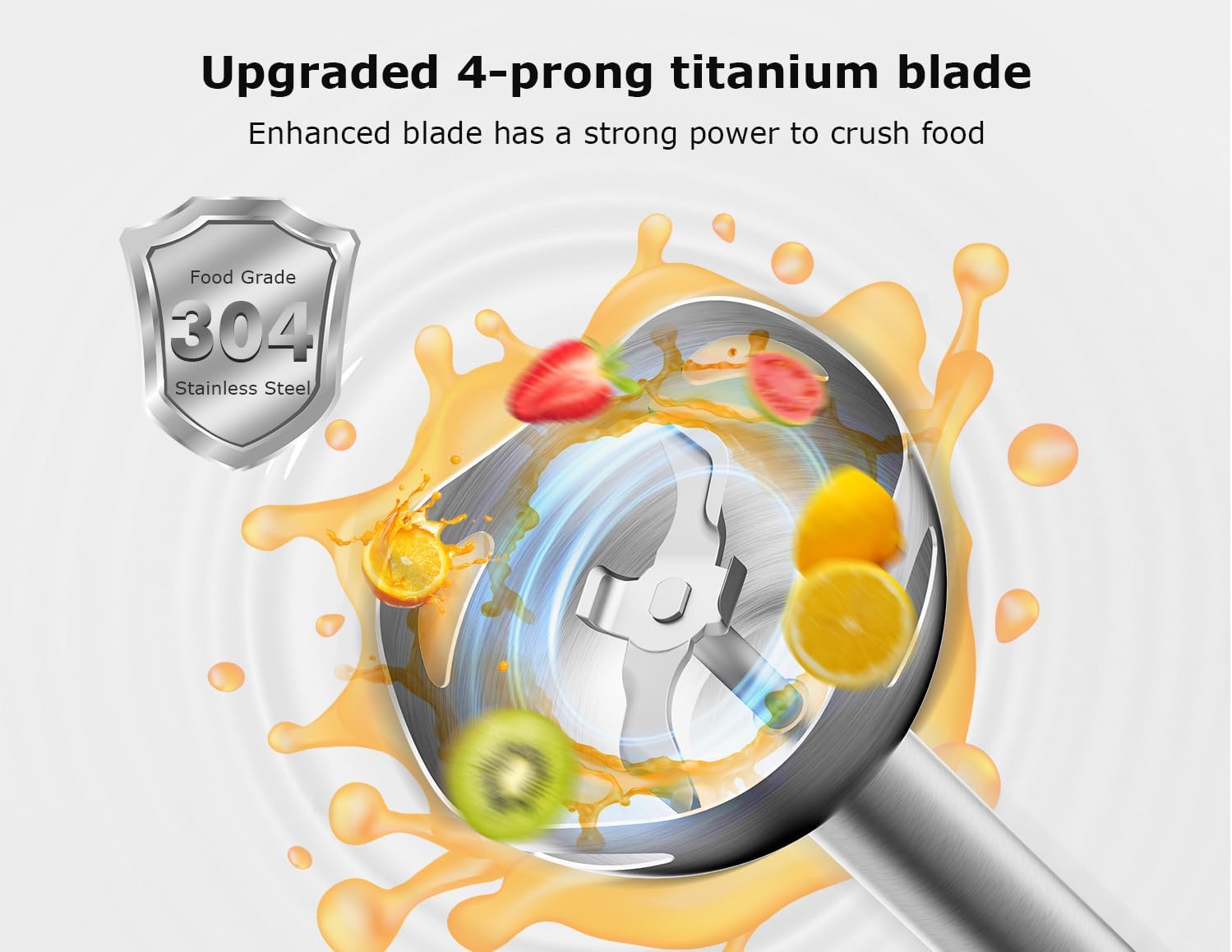 - 【ADJUSTABLE SPEED】 Immersion hand blender with 2 mxing speed can quickly blends ingredients and meet various blending task with its stainless steel shaped blade.