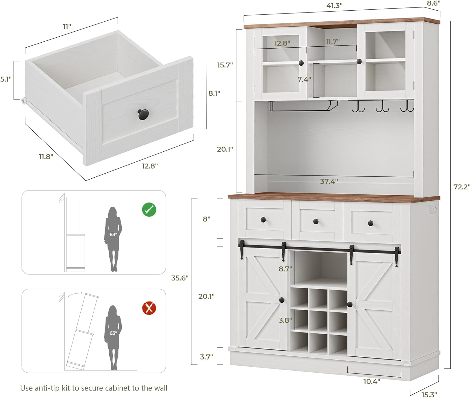 - PRODUCT UPGRADES YOU'LL LOVE: We've amped up your bar cabinet! Now featuring 6 hooks (up from 4), reinforced wine glass grids that won't bend, silky-smooth aluminum barn door tracks, and a thicker back panel. Plus, we've simplified installation so you'll be set up before your wine chills. Every upgrade was designed to make your life easier