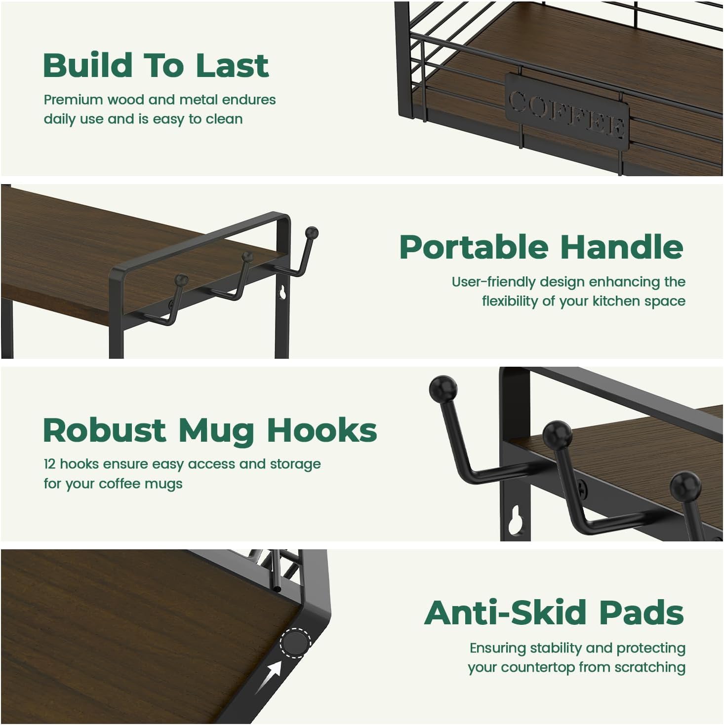 - Space-Saving Solution: Optimize your kitchen space with our compact yet capacious coffee mug rack organizer, perfect for streamlining any coffee station setup