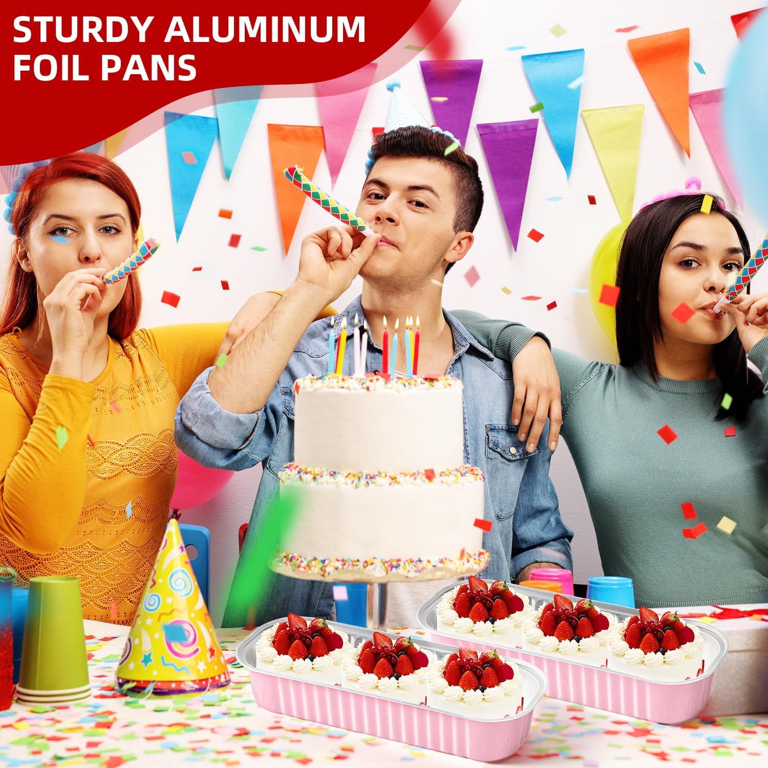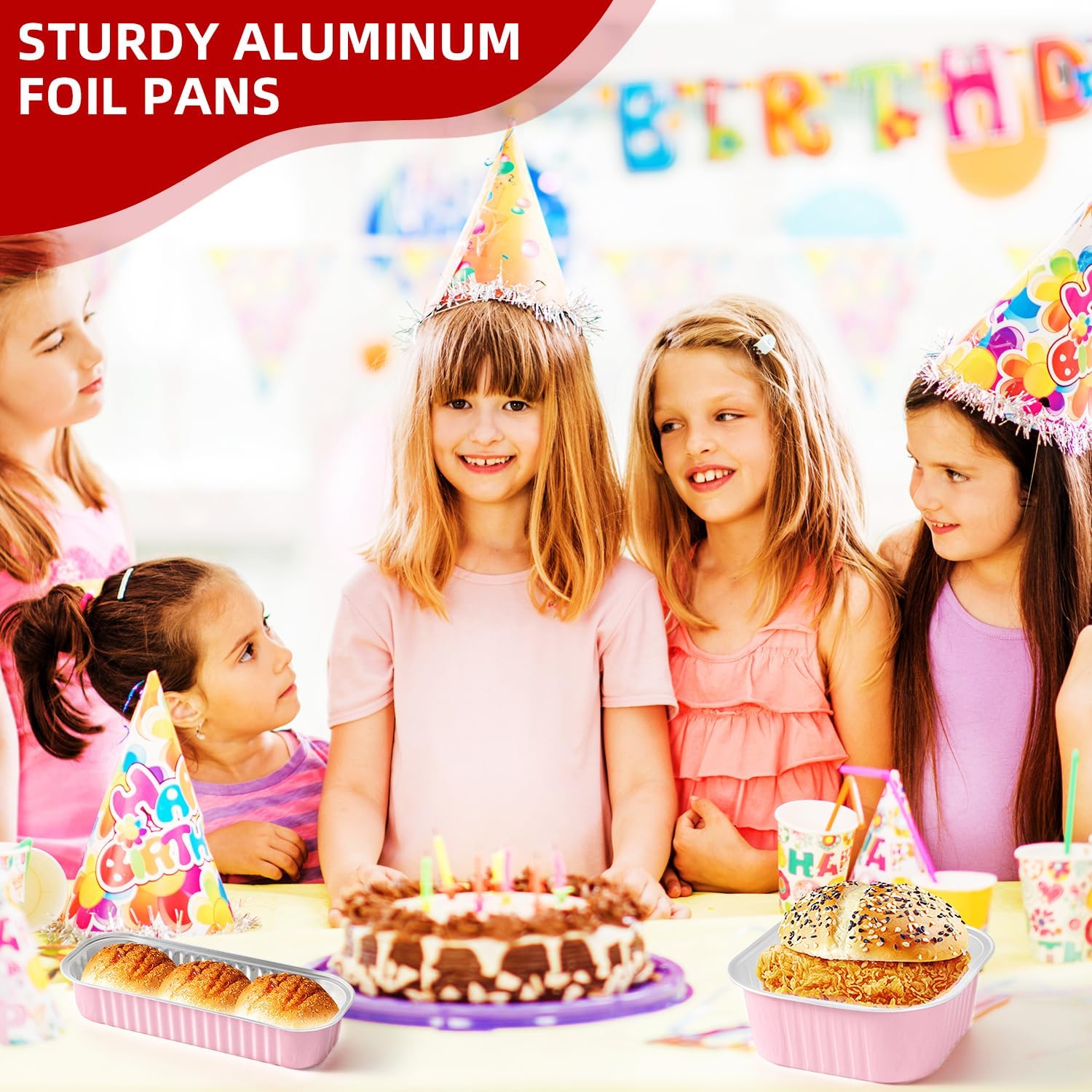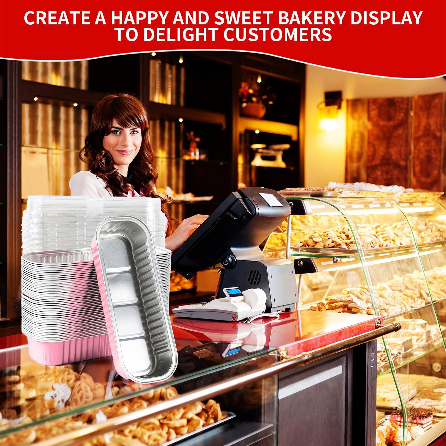 - Attractive Pink Aluminum Finish – These pink mini loaf pans with lids add a festive touch to any occasion. The elegant pink aluminum pans with lids and included stickers make your baked goods stand out as professional and gift‑ready.