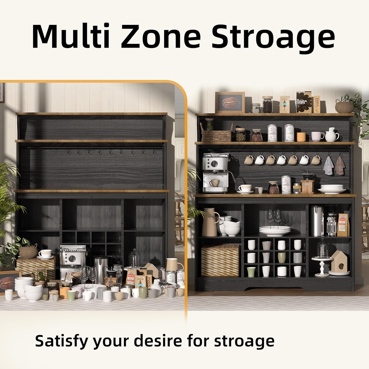 - [Multifunctional Use]: This coffee station allows you to stylishly display and store your coffee mugs and stemware. It also can serve as a wine bar cabinet, coffee bar, home bar, sideboard, TV bar, and more. It is an ideal coffee bar for kitchen, living room, dining room and office.