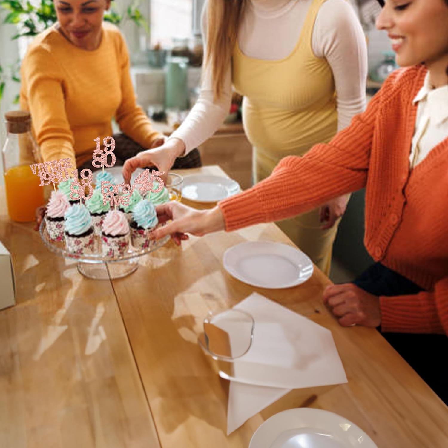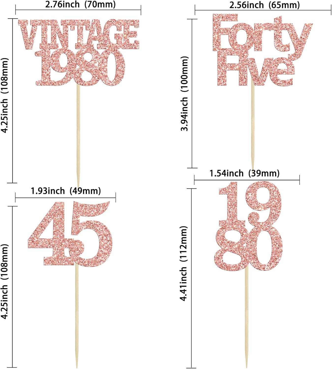 Gyufise 24Pcs 45th Birthday Cupcake Toppers Glitter Cheers to 45 Fabulous Forty Five Vintage 1980 Cupcake Picks 45th Birthday Wedding Anniversary Party Cake Decorations Supplies Rose Gold