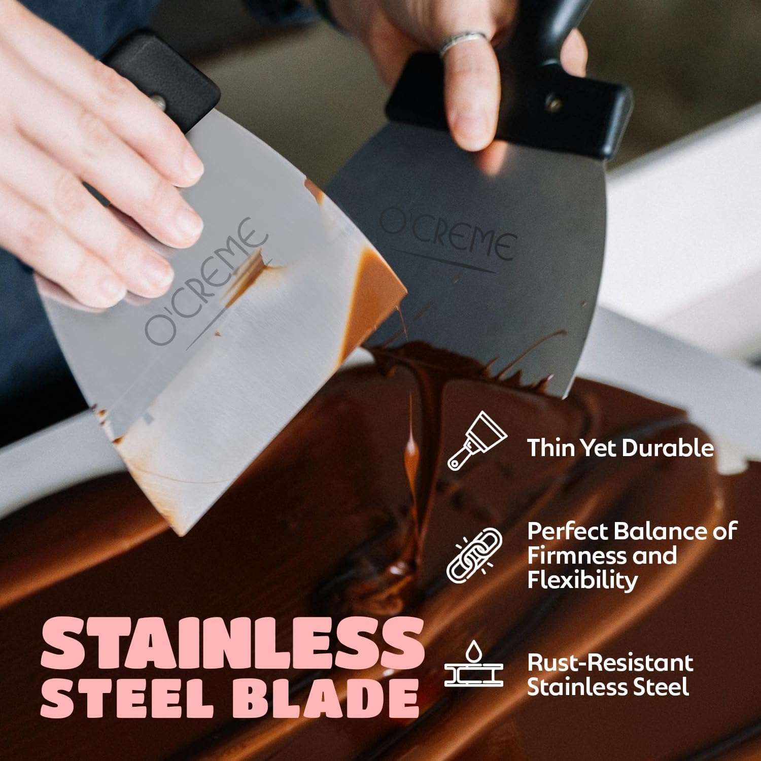 O'Creme Coating Spatula for Chocolate - Stainless Steel Chocolate Thermostat Spatula Dough Scraper (7.9 x 3.9 inch) – Heavy-Duty & Multipurpose Baking Tool, Cake Leveler, Icing Smoother