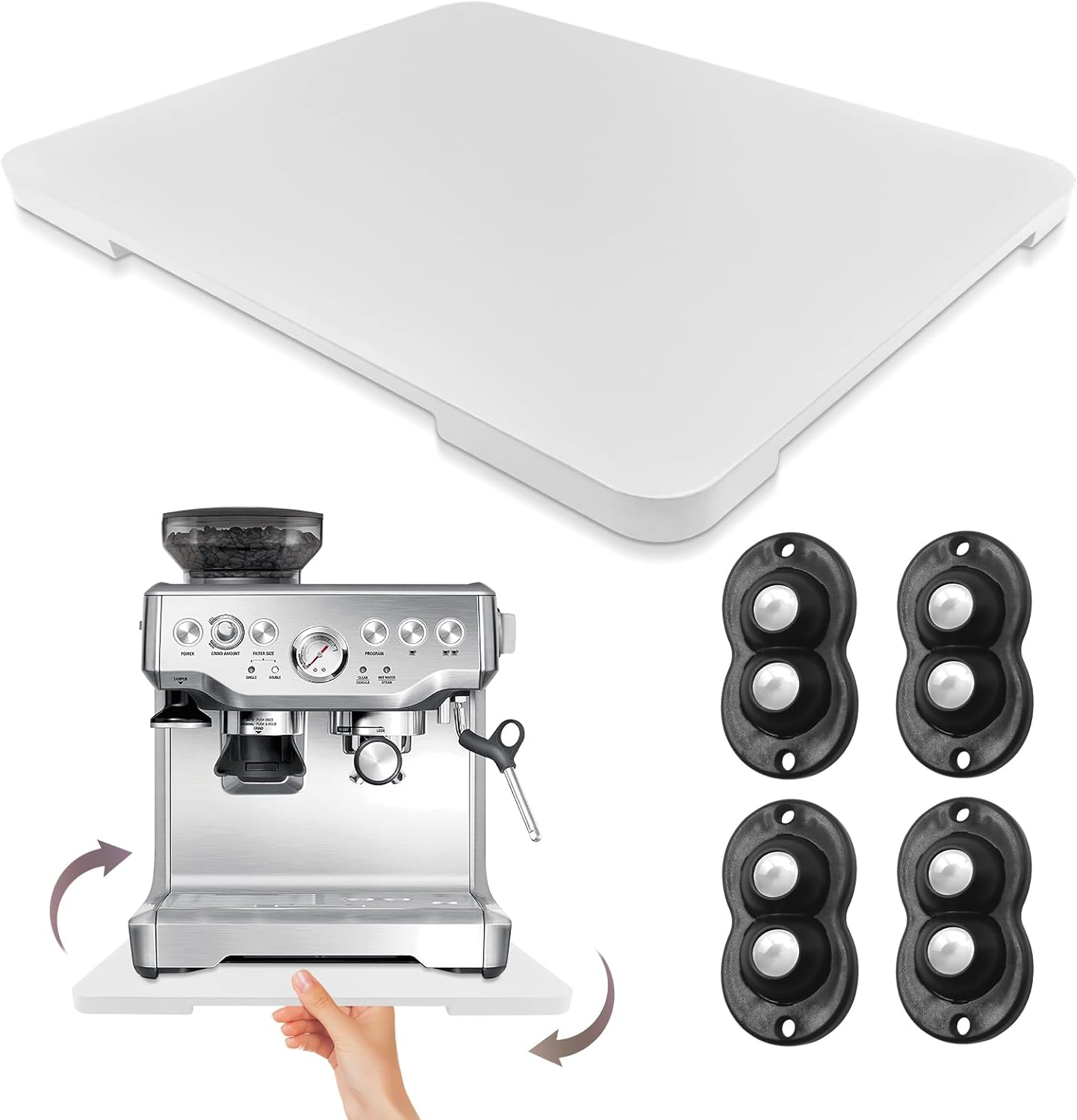 360° Rolling Tray Bamboo Appliance Slider for Kitchen Appliances, for Breville Espresso Machine Accessories, Sliding Tray for Coffee Maker Appliances Mat Easily from Under The Cabinet White13"×15.7"