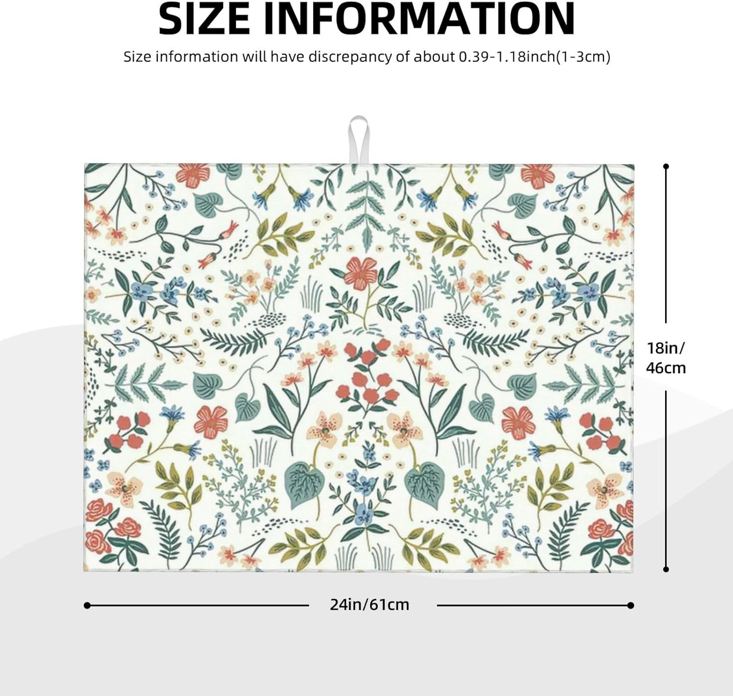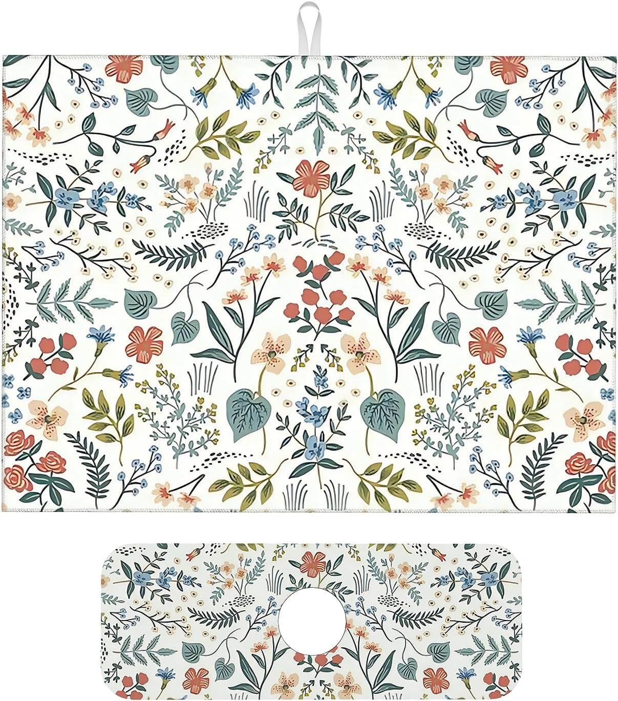 2Pcs Dish Drying Mats Faucet Mats Sets Large Size Coffee Mats Sink Faucet Mat Splash Guard for Kitchen Counter Bathroom Sink Coffee Bar Kitchen Decor (Wildflowers 1, 18"x24" 15" x 5.5"Set)