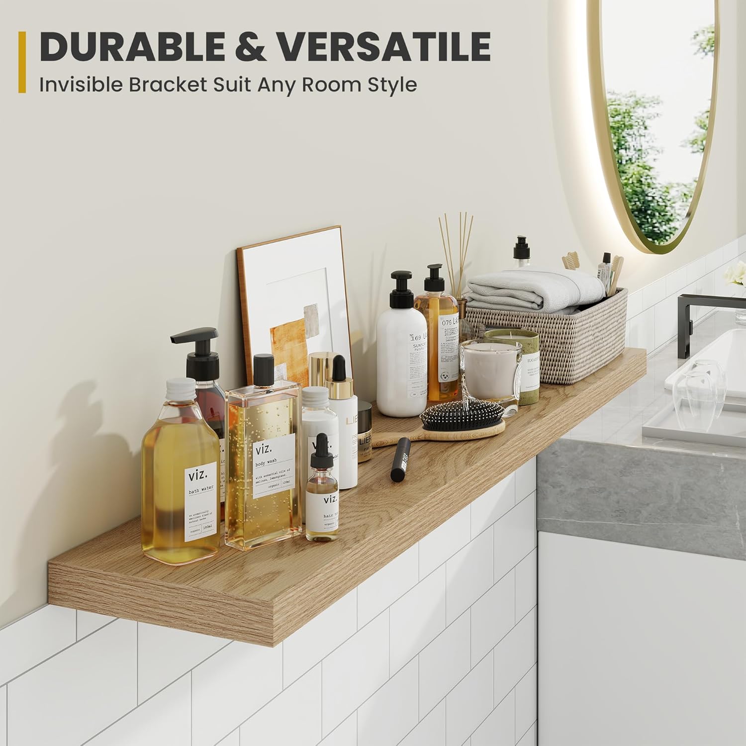 - [ROBUST & SECURE MOUNTING]: Equipped with a sturdy, hidden mounting bracket, these 40-inch floating shelves ensure solid support for your items. Designed for easy and secure installation, they come with all necessary hardware for a firm, wobble-free setup, allowing you to confidently display decor, photos, or functional items with style.