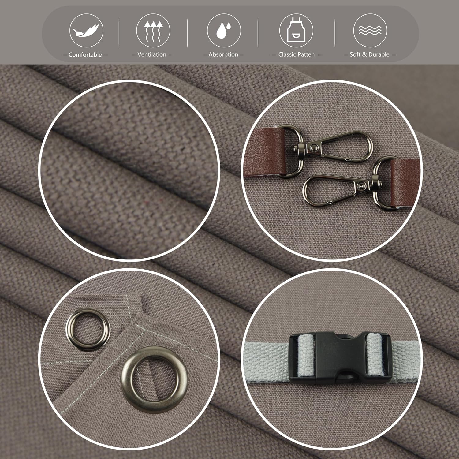 - Expert Craftsmanship: This apron is made of 12-ounce cotton canvas, metal grommets, rivets, and leather. The pockets are reinforced with metal rivets at the corners, with double stitching and bottom folding edges to increase strength and durability
