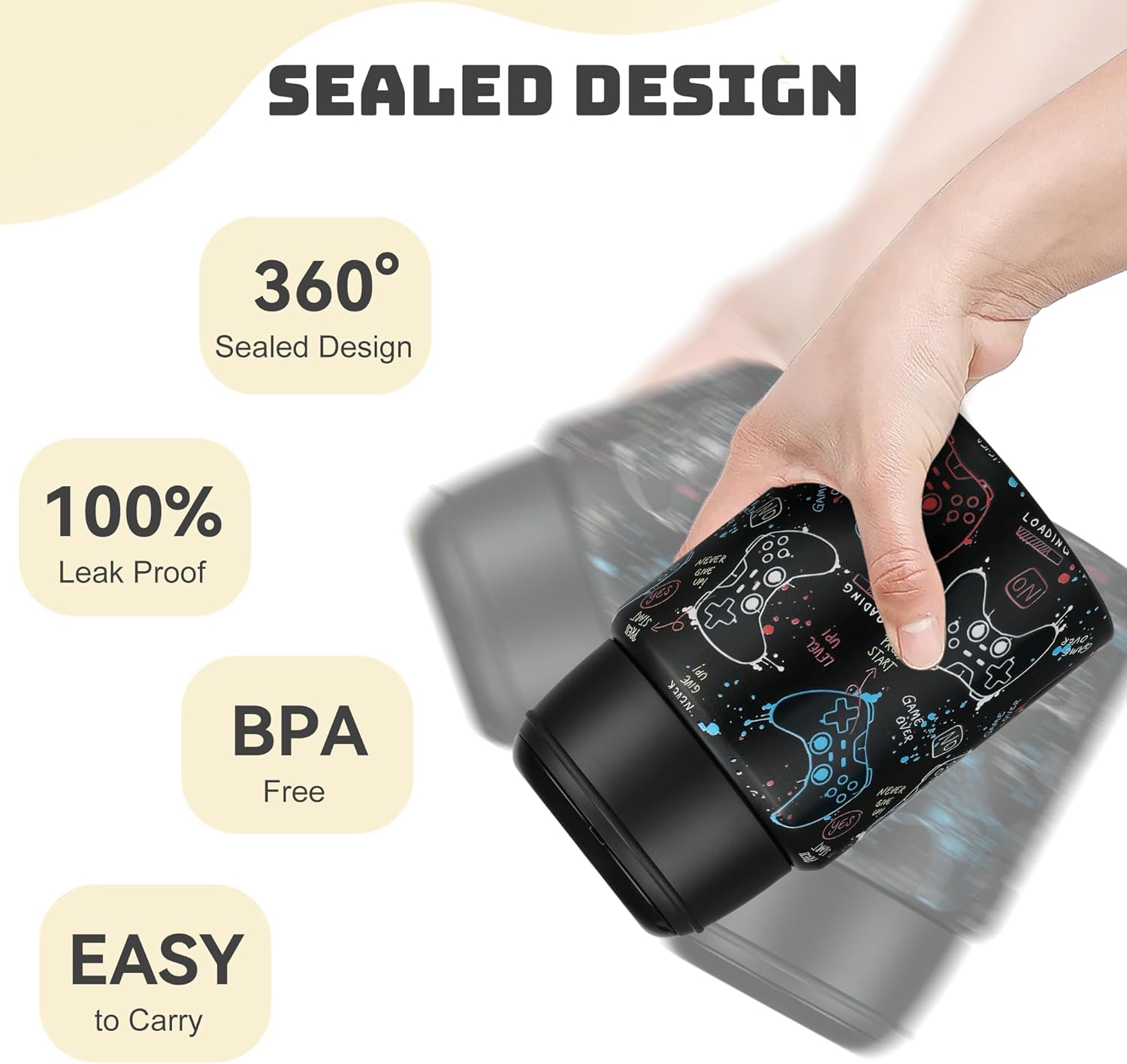 - KID-LOVED DESIGNS & HASSLE-FREE USE - Choosesleek solids (Black, Ice Blue, Lilac, Pink) or fun prints (Game Console, Dinosaurs, Unicorns, Rainbow). Simple screw lockallows easy adult-assisted opening. Officially recommended for ages 3+. Easy to enjoy a healthy lunch!