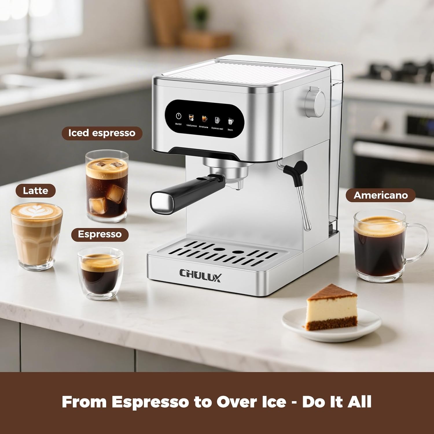 CHULUX Cold Brew Espresso Machine, 20 Bar Stainless Steel Touchscreen Cappuccino & Latte Machine with Steam Wand for Home