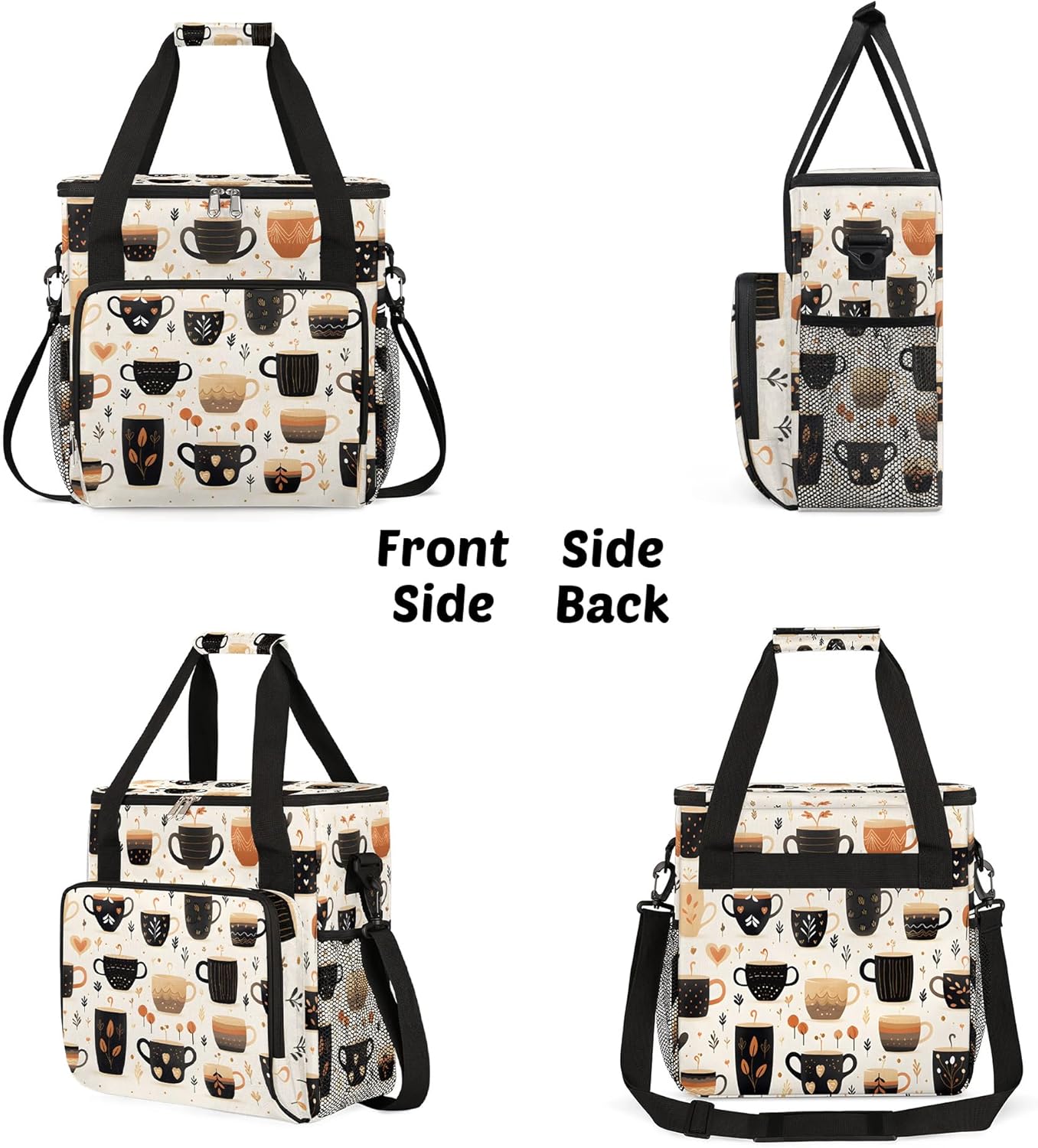 - 【MULTIPLE POCKETS】This travel coffee maker bag has many pockets to store coffee pods and coffee mugs. The main compartment easily accommodates the coffee machine, while the front pockets with PVC pockets and a zipper mesh pocket can store coffee pods, sugar packets, napkins, and other accessories and 2 side mesh pockets designed