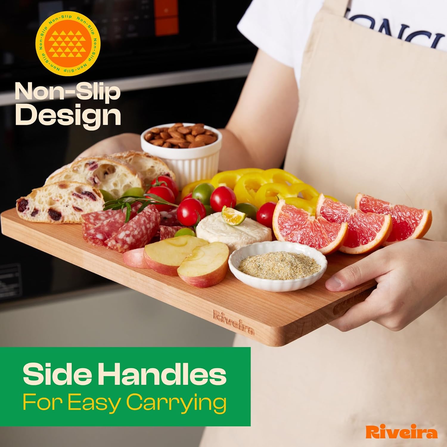 - Handle Everything with Confidence — The built-in handle holds of the cherry cutting boards are designed for handling everything with confidence and easy maneuvering. Pre-oiled and ready for immediate bewilderment, this wooden chopping board is not just convenient for the kitchen mess but has a unique design to maintain, ensuring a performance that is both comfortable and clean for chopping boards for kitchen. Riviera non toxic cutting boards for kitchen will be perfect in your kitchen.