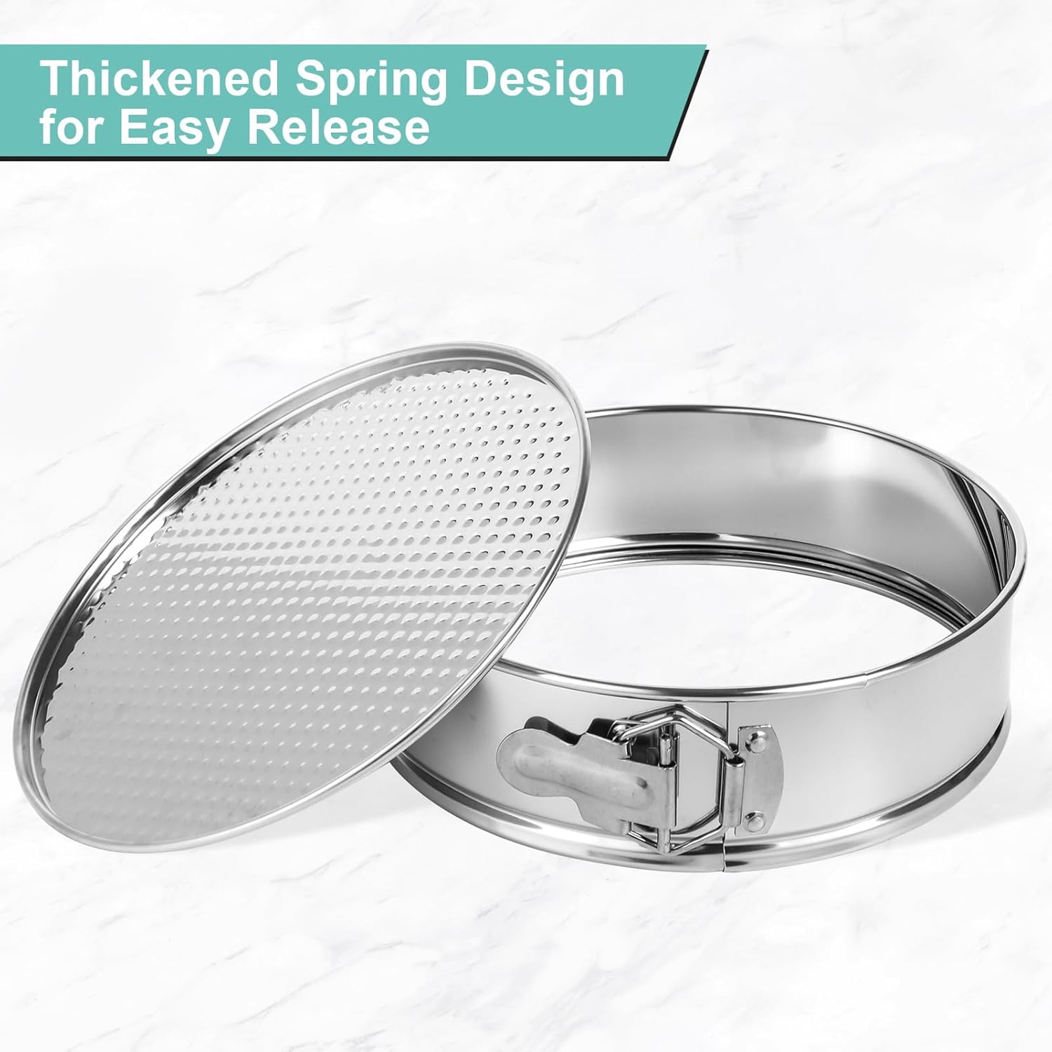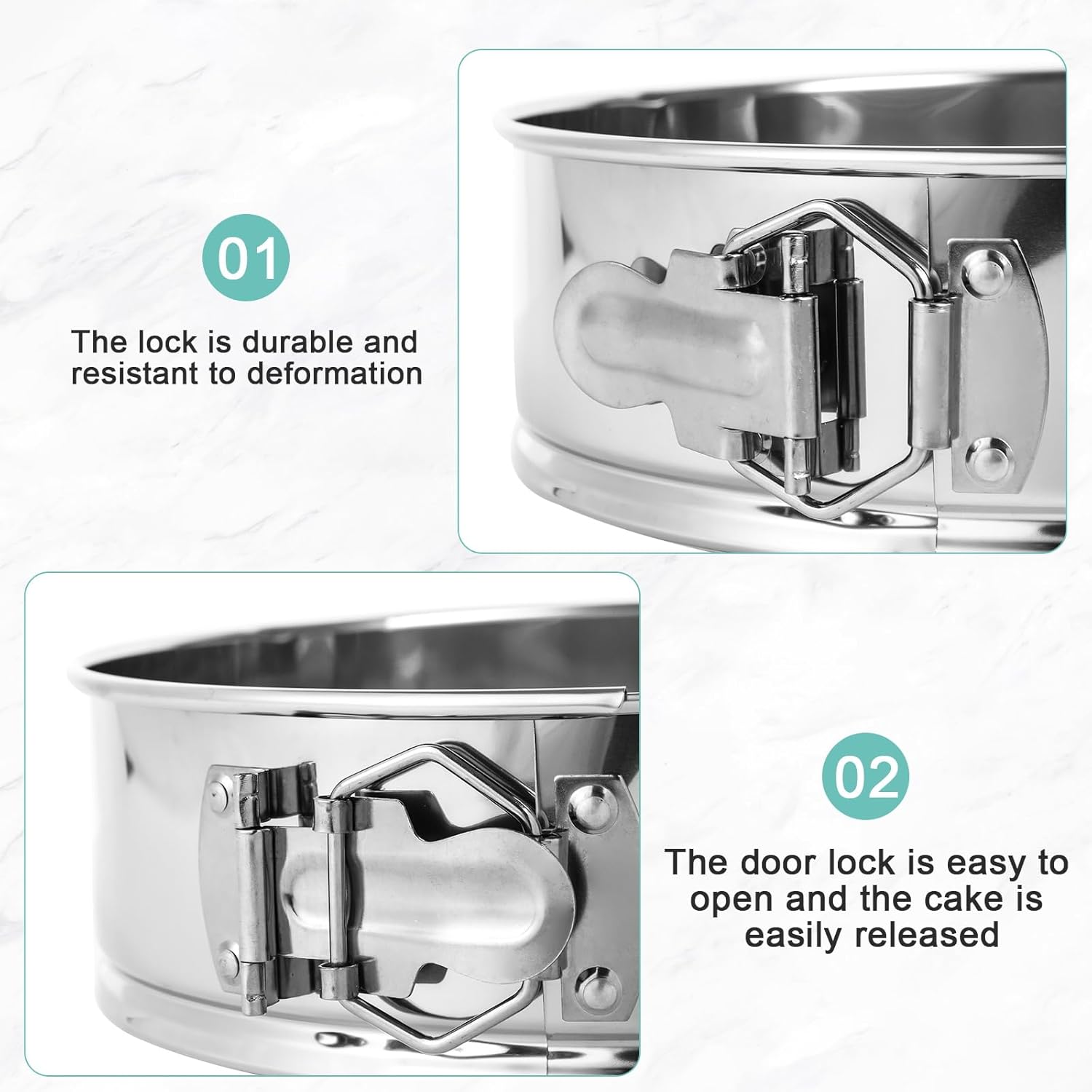 - Food Grade Stainless Steel: Made with Durable 304 stainless steel, with a tight-seal spring latch mechanism for secure closure and easy removal of delicate desserts, ensures long-lasting performance.