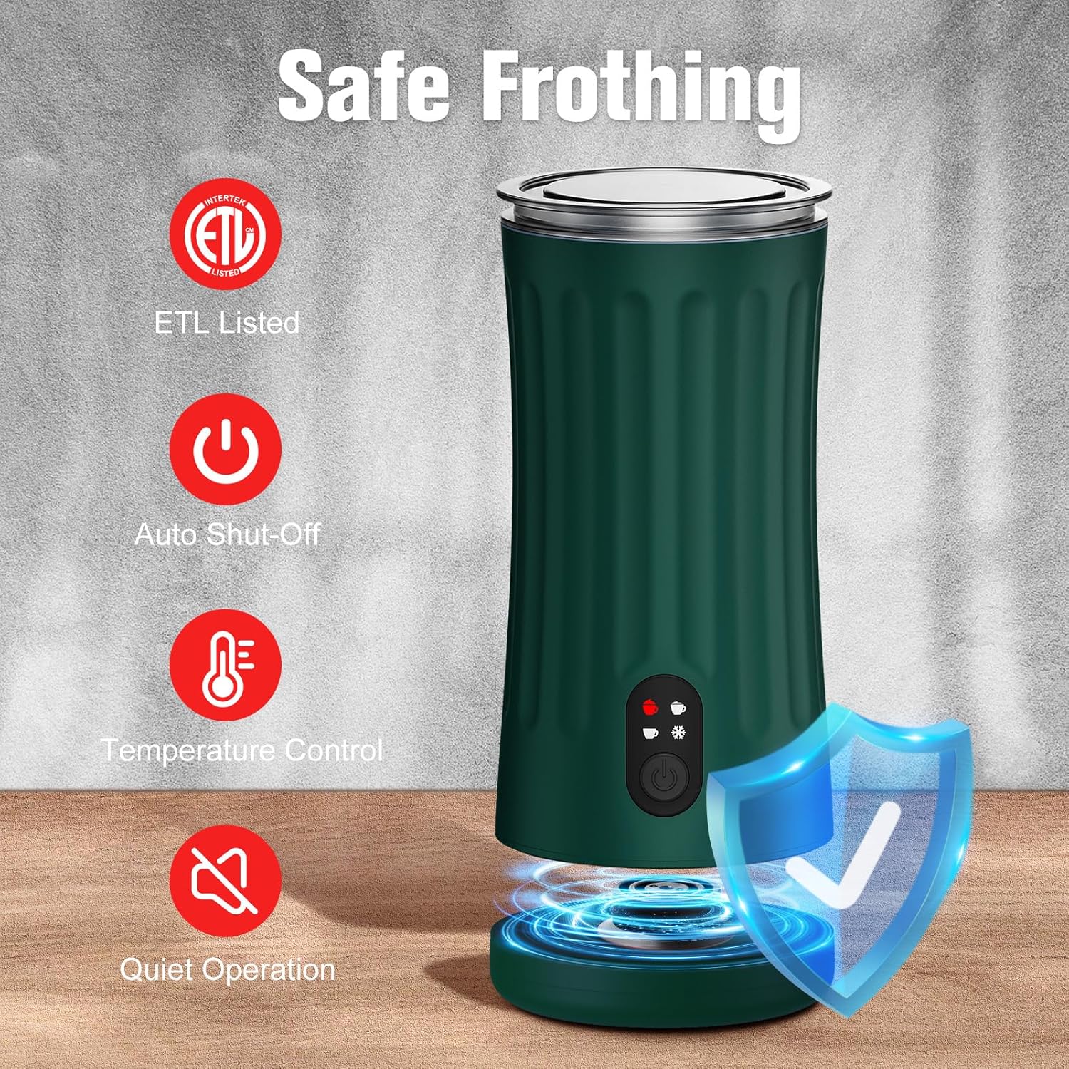 Electric Milk Frother, 4-in-1 Milk Steamer and Frother, 8.1oz/240ml Automatic Warm and Cold Foam Maker, Auto Shut-Off Frother for Coffee, Latte, Cappuccino, Macchiato(Green)