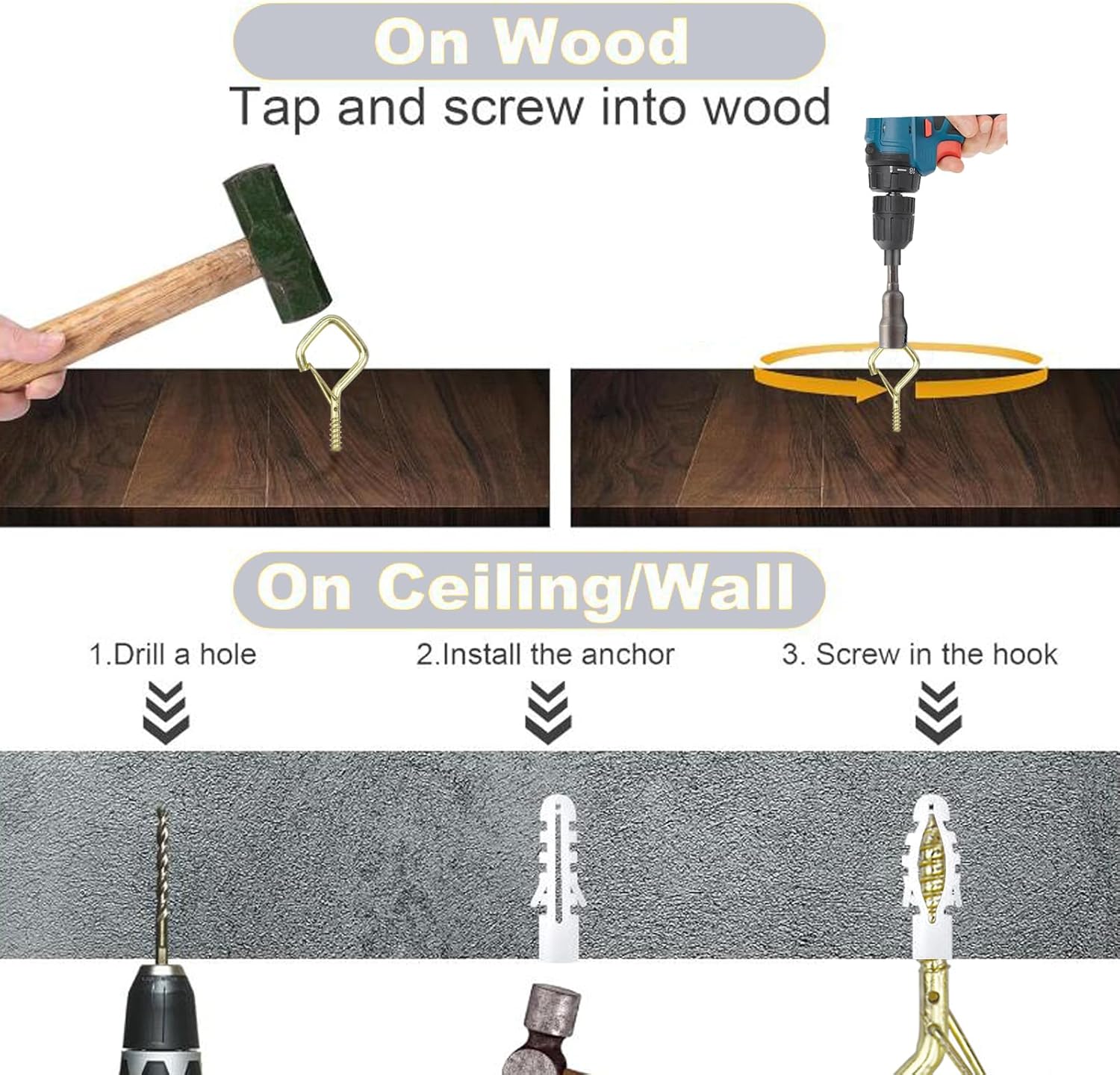 - 💡Easy Installation: With a simple screw-in mechanism, these hooks can be easily installed including stucco, wood.