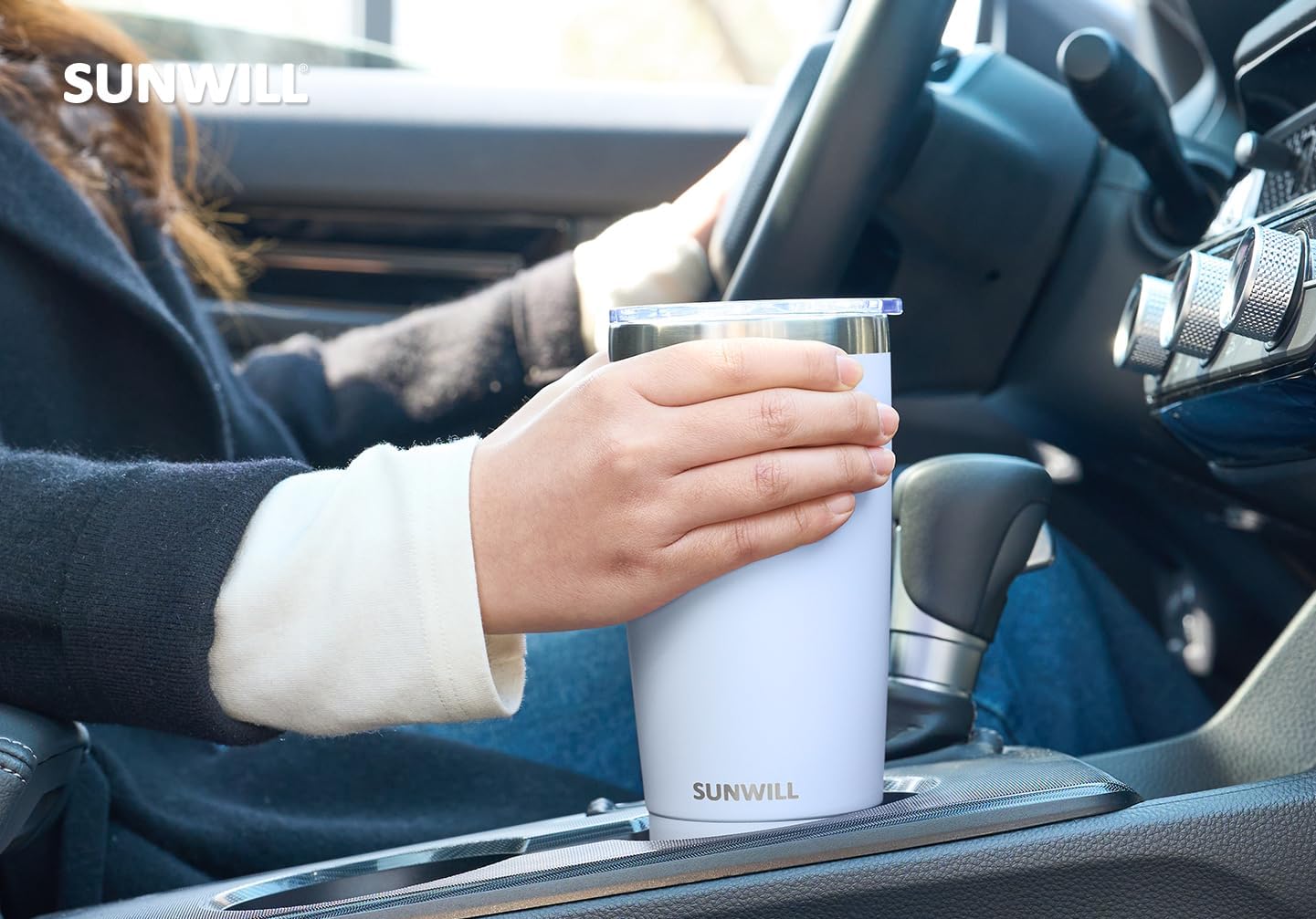 SUNWILL Travel Coffee Tumbler 20 oz, Insulated Mug with Lid, Stainless Steel Cup for Hot and Cold Drinks, Powder Coated Iceberg
