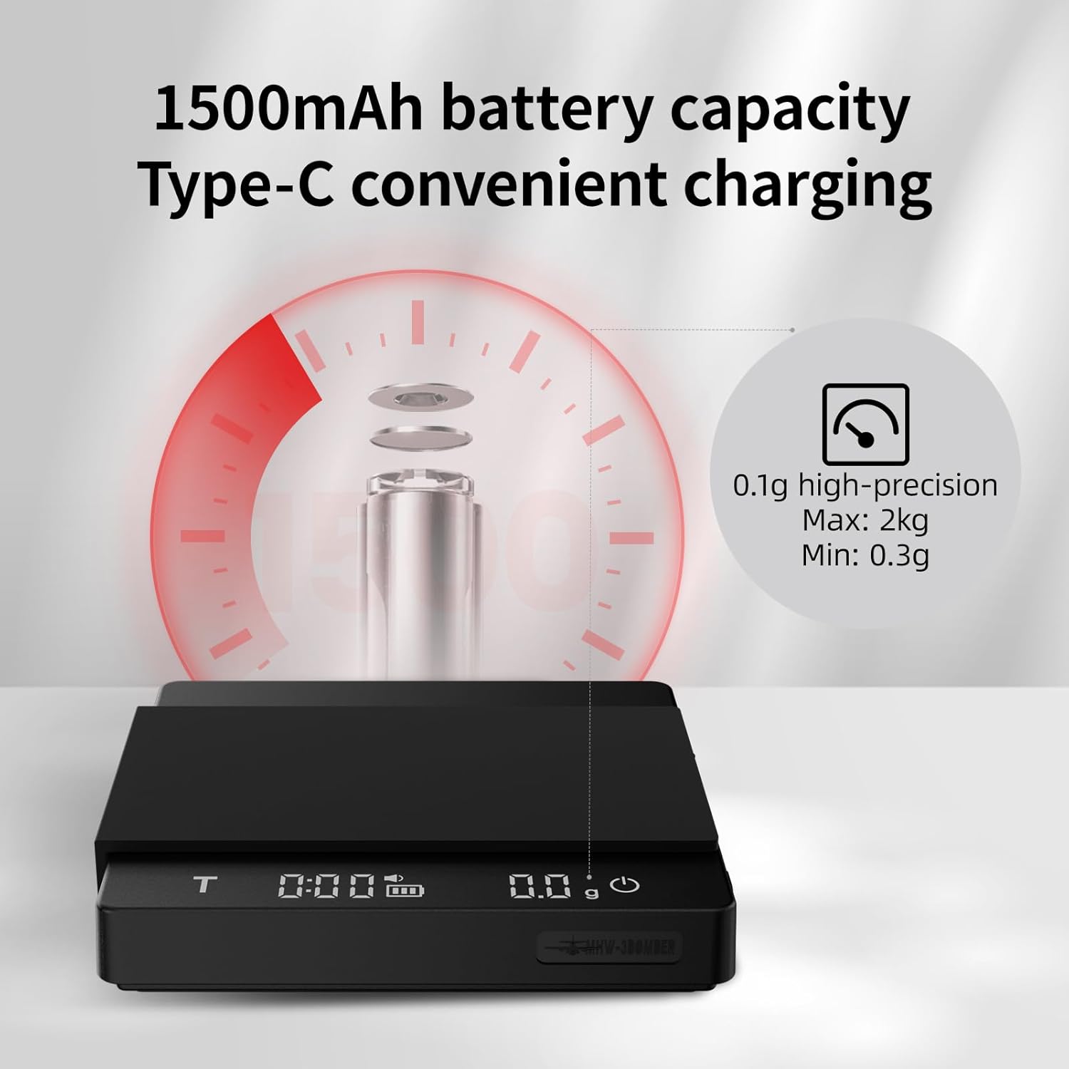 MHW-3BOMEBR Espresso Scale with Auto Timer, Rechargeable Coffee Scale for Barista, 0.1g High Precision Digital Coffee Bean Weight Scales, 0.3-2kg, Solid-liquid Detection, Auto Peeling,White ES6028W-OS