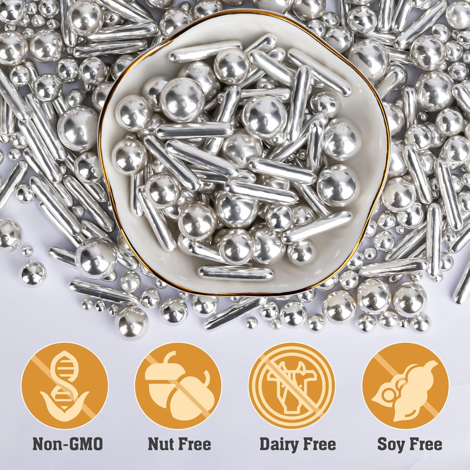 - 【Elegant Silver Sprinkles for Versatile Use】:The bright silver color adds a beautiful, classy touch to desserts, making them look extra special. These silver candy pearl rods are perfect for decorating cakes, cupcakes, cookies, giving them a shiny, eye-catching finish that’s sure to impress. Perfect for weddings, birthdays, anniversaries, Halloween, Christmas, Easter, Mother's Day, New Year’s and other special occasions.