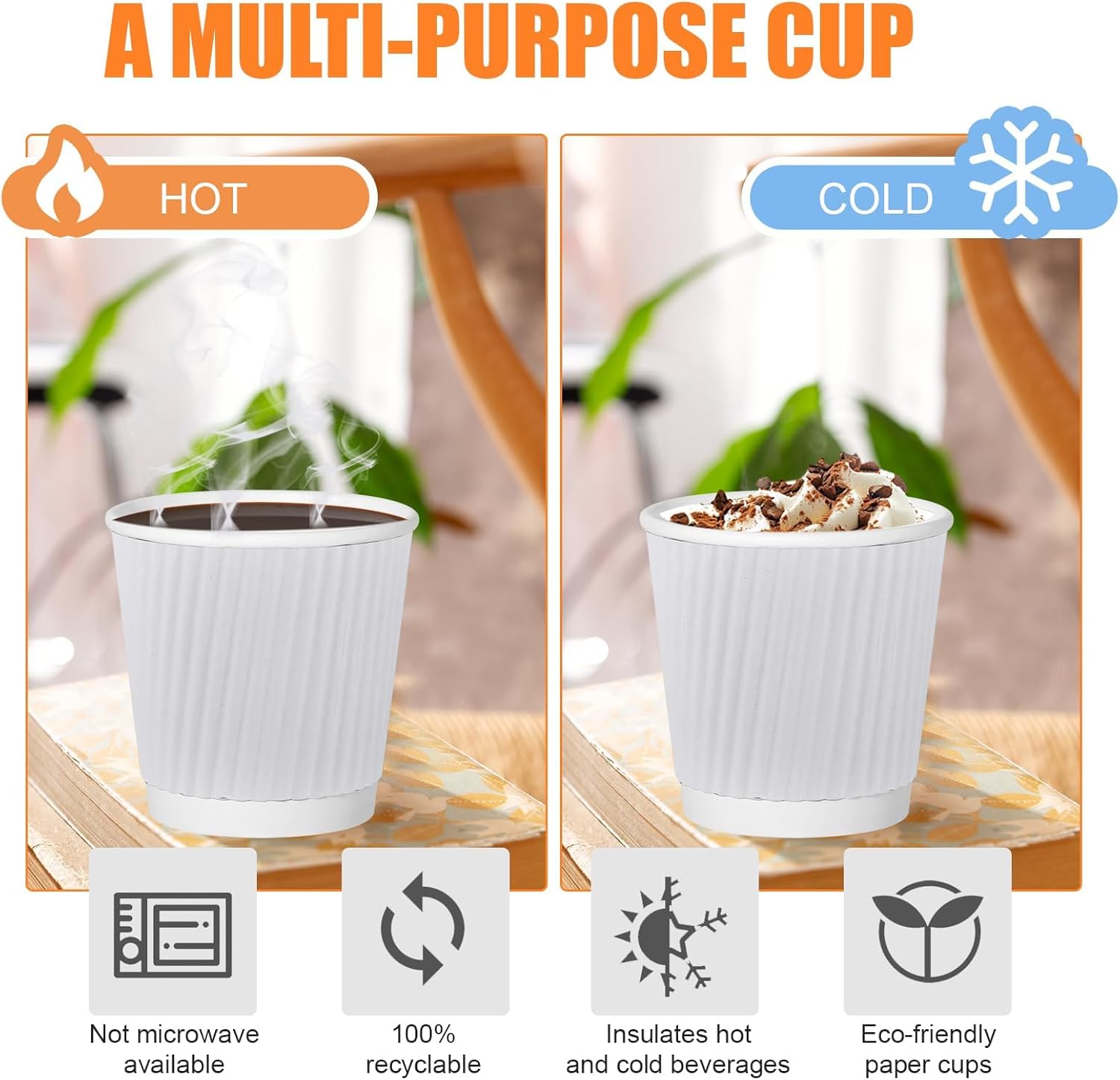 120 Pack Paper Espresso Coffee Cups, 4 oz Disposable Coffee Cups,Corrugated Insulated Ripple Wall, Paper Ripple Cup for Coffee, Hot Chocolate and Hot Tea Drinks -White