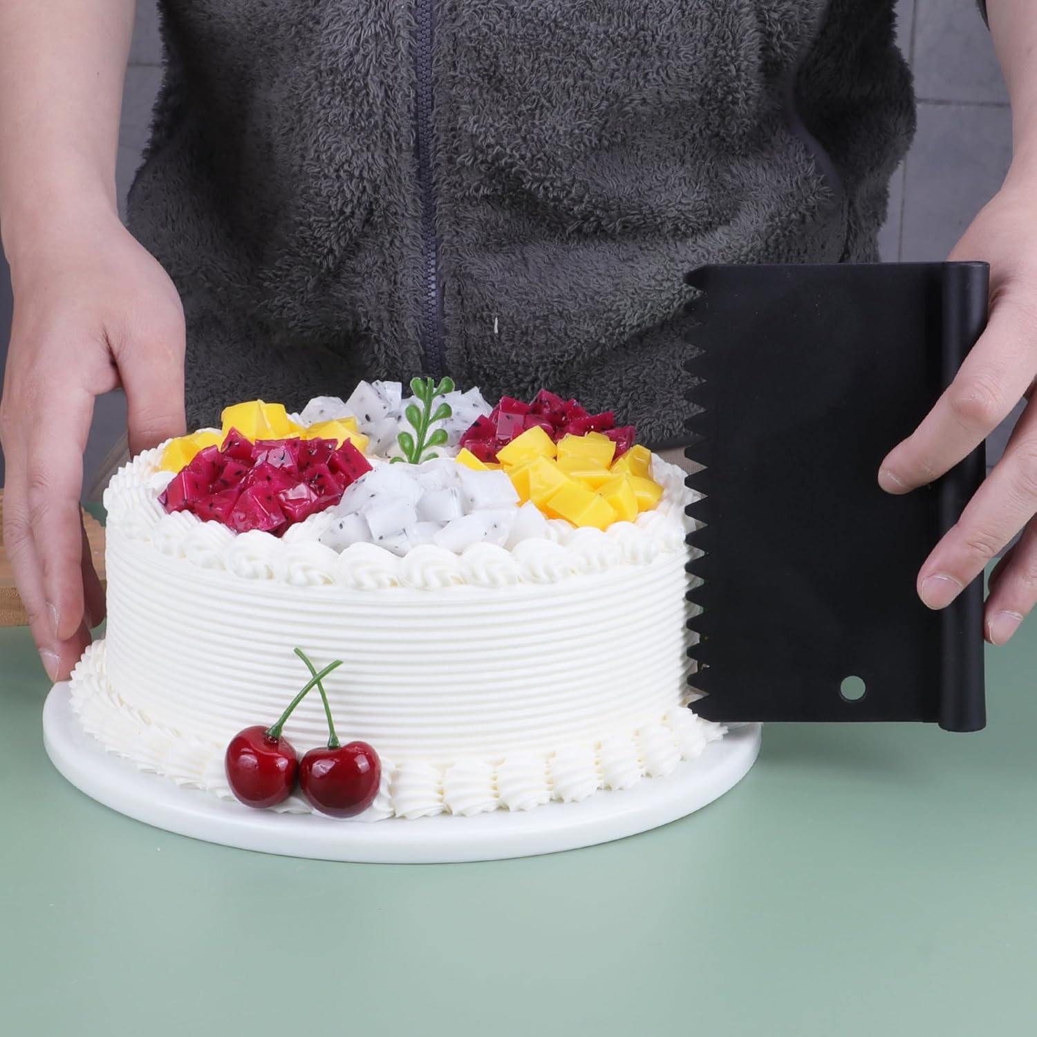 - DOUGH SCRAPER: more than just a bench scraper. It can also be cut into dough and made into pastry/pizza/spaghetti/bread and biscuits. Smooths the icing/cream on the cake, divide the butter into small pieces etc! 5-piece dough scraper, which can be used to cut various foods- you have always wanted this bench scraper, you just don't know it
