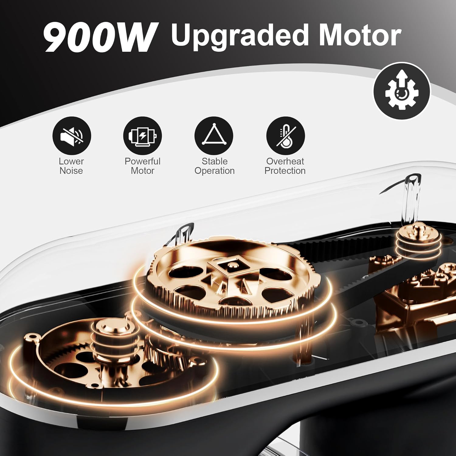 - Powerful 900W Motor-The 900W motor delivers exceptional power, effortlessly tackling thick dough, dense batters, and delicate mixtures. With smooth and consistent mixing performance, this powerful motor ensures that the stand mixer can handle even the most demanding tasks without overheating, offering long-term reliability and efficiency.