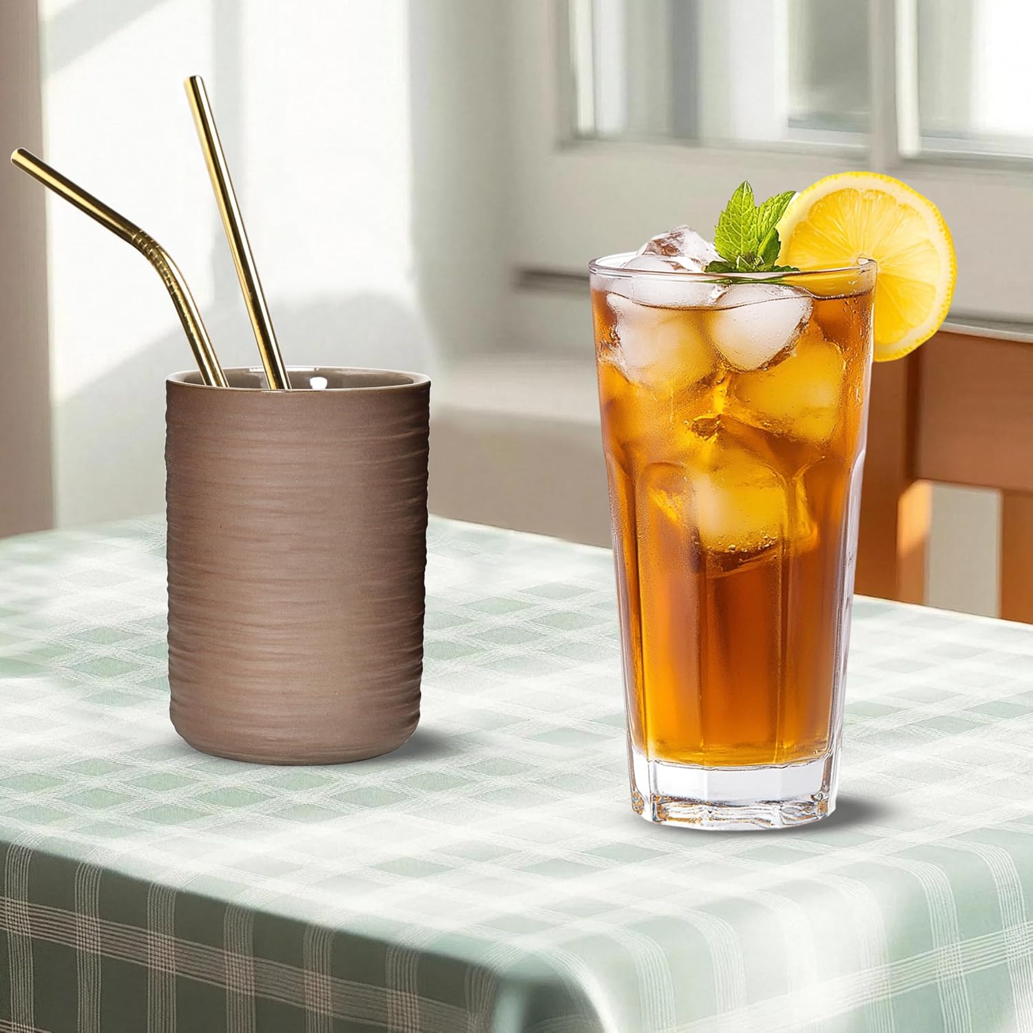 Ceramic Spoon Holder for Coffee Bar, Upright Tea Spoon Holder Cup, Coffee Stirrers Straws Stir Stick Holder, Glossy Silk Stripe