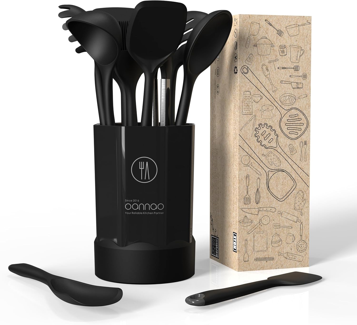 - THICKENED SILICONE, FOOD GRADE AND BPA FREE: The silicone kitchen utensils set is made of thickened food-grade silicone, BPA-free, odorless, and safe for food contact. This 12-piece silicone utensils sets features enhanced thickness to support durability and quality, crafted for customers with high standards