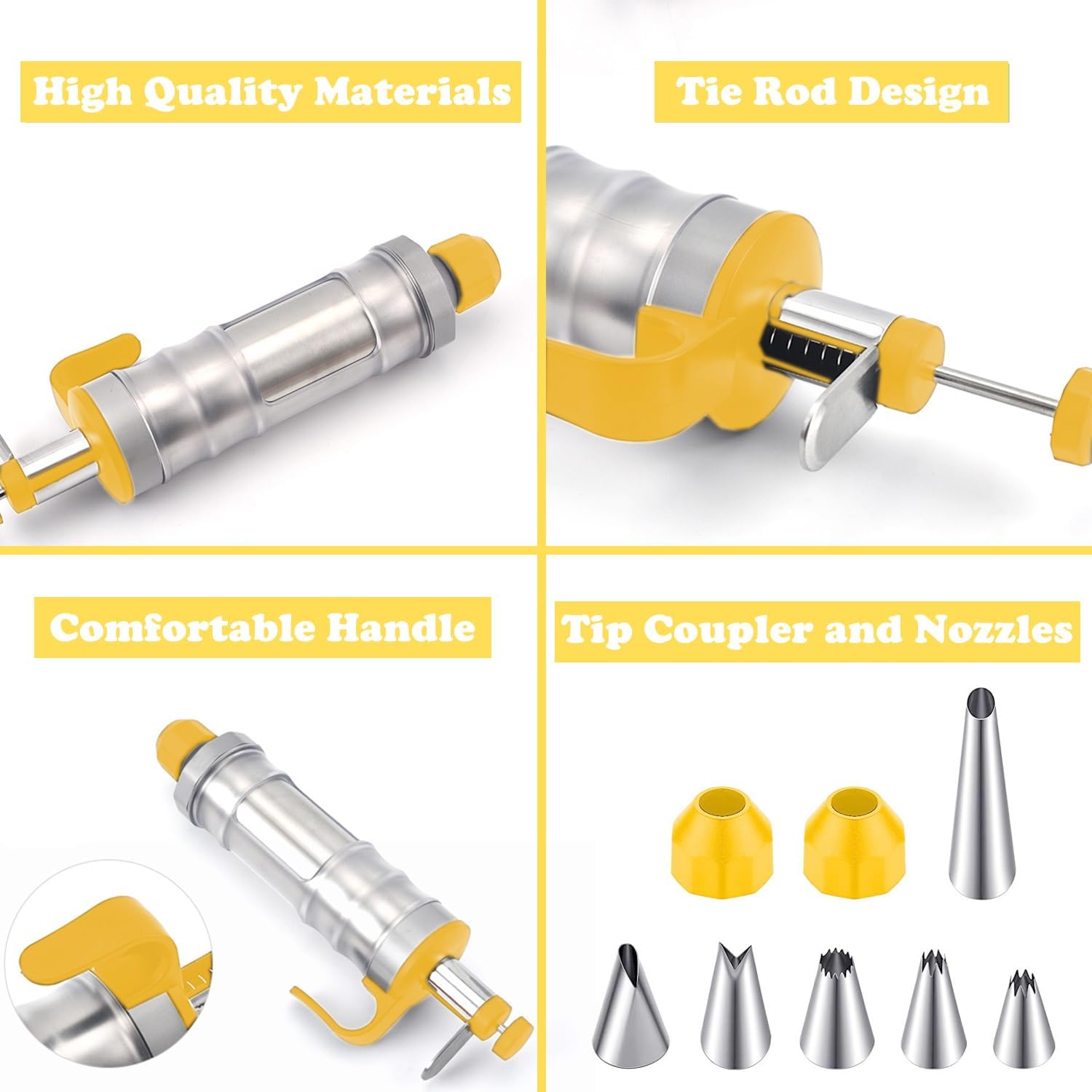 - Versatile Cupcake Decorating Companion: This stainless steel icing gun is great for decorating cakes, cookies, pies, brownies and candies. Elevate your baking creations with ease
