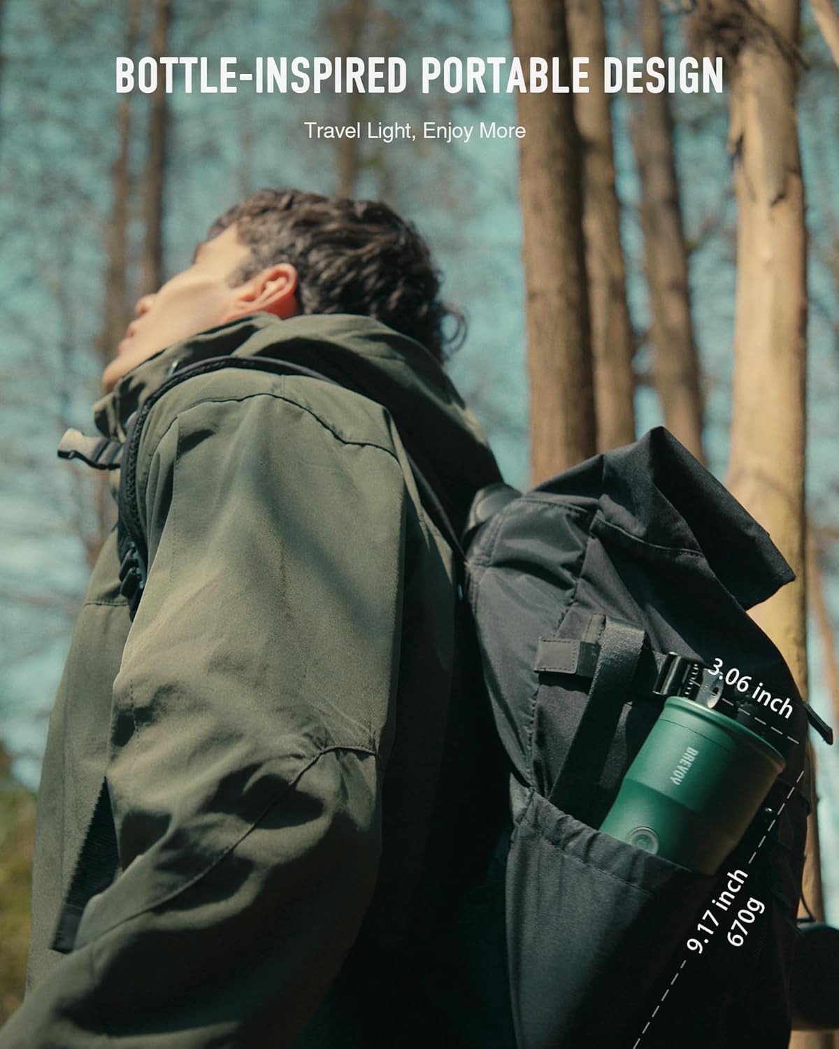 - 【Bottle-inspired Portable Design】: Weighing just 1.48 pounds with one-button automatic extraction. The lid doubles as a coffee cup, freeing your hands while brewing. Travel light, enjoy more.