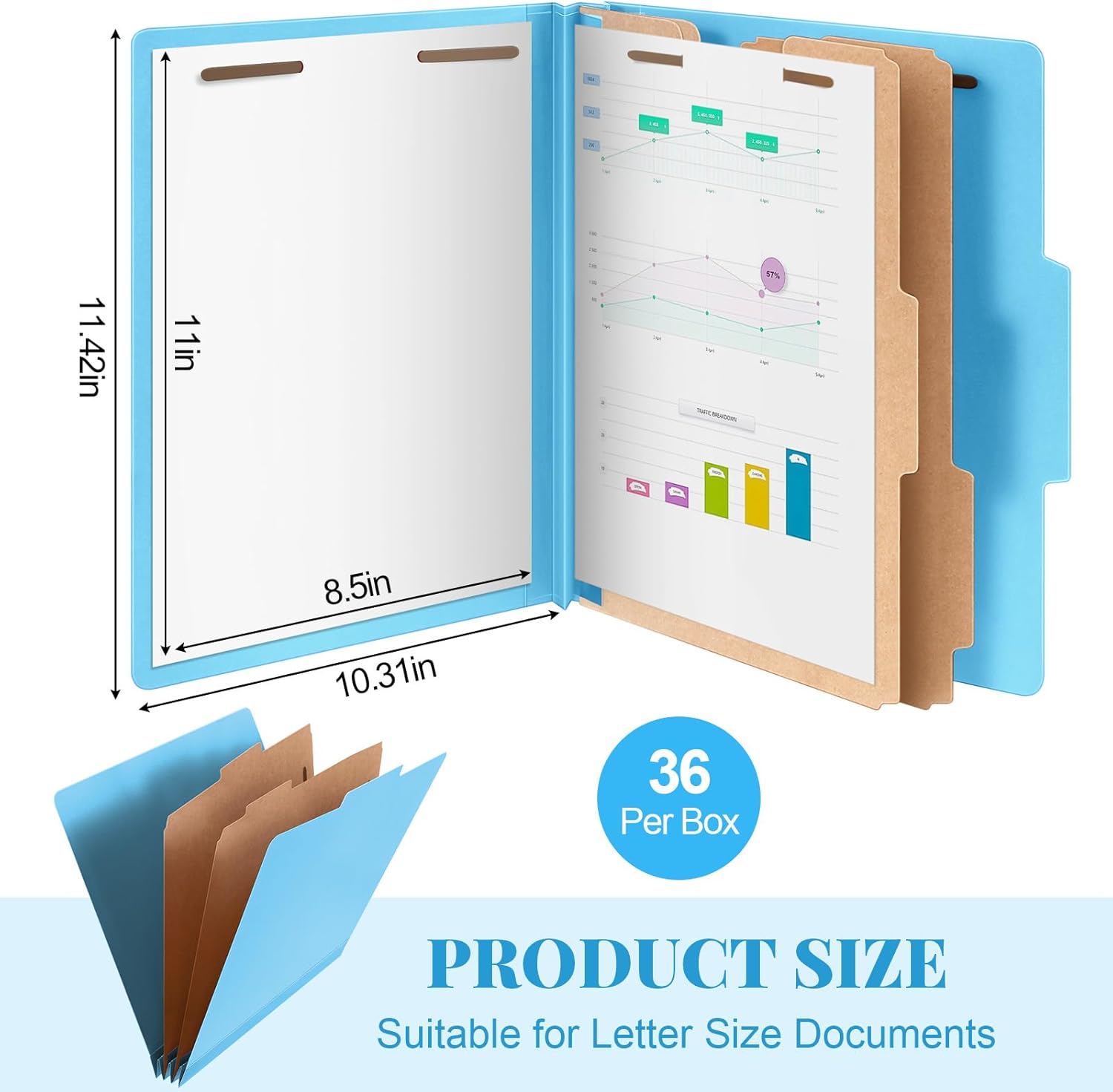 36 Pcs Classification Folders Letter Size, 2 Divider Pressboard File Folders with 3. 5 Inch Expansion, 2 Prongs Fastener, Heavy Duty Office File Organizers for Teachers, Medical (Blue)