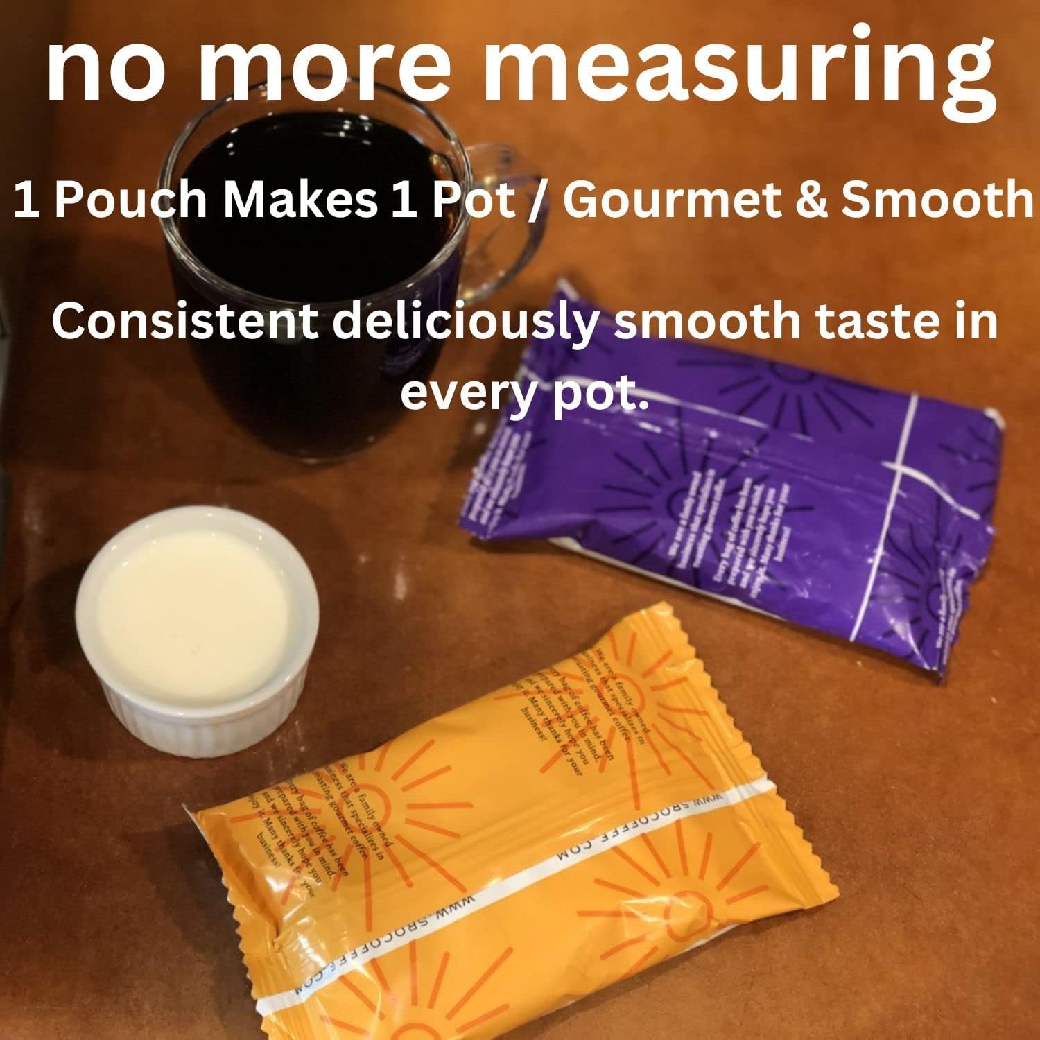 - PRE MEASURED CONVENIENCE - Each individual decaf packet is for a 12 cup drip coffee maker to make a single pot. The decaf premeasured bags keep your coffee fresh for over a year, ensuring each sip will be a silk smooth luxe experience.