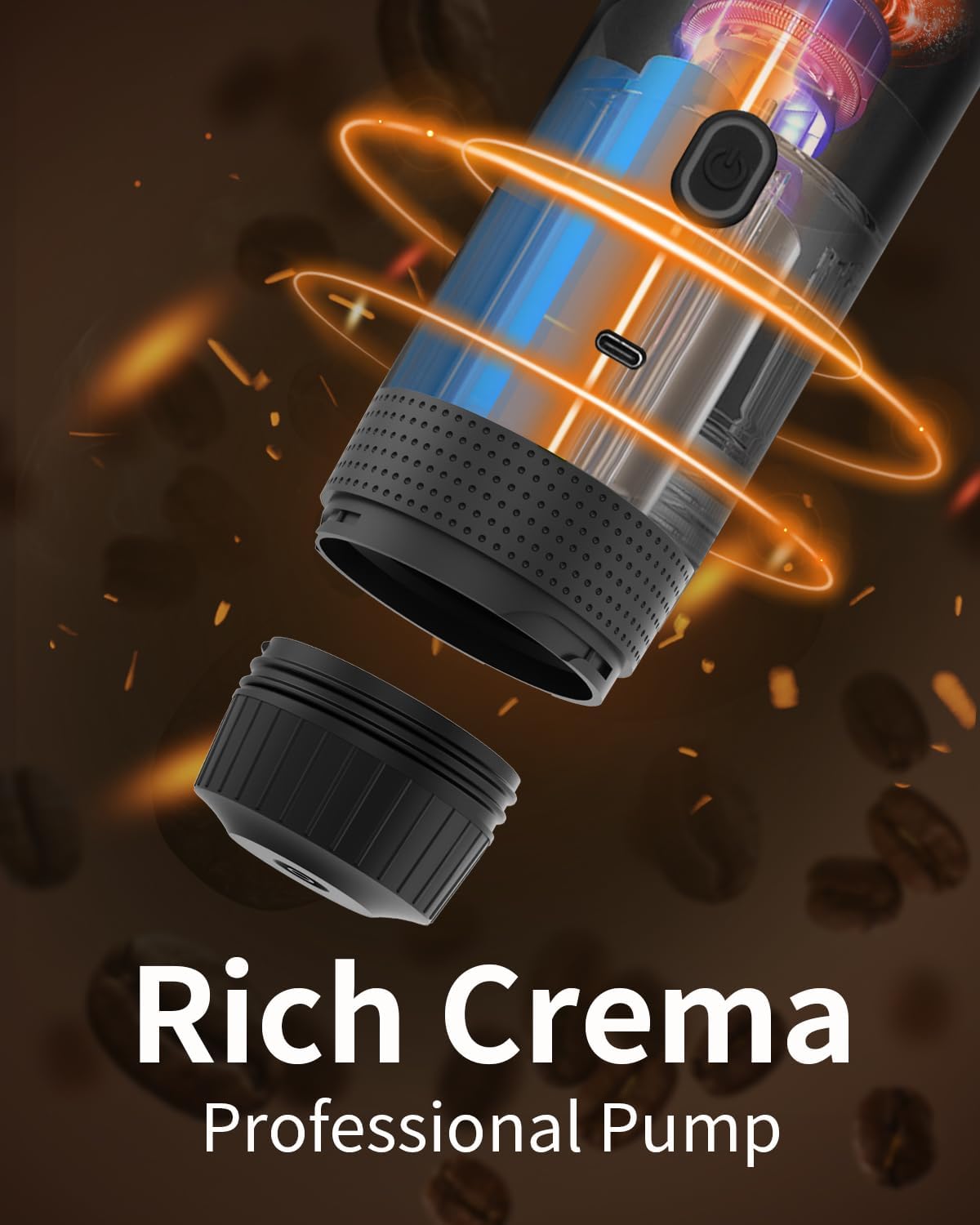 Portable Electric Espresso Machine, Car Coffee Maker for Travel Camping, Battery Powered Coffee Brewer Compatible with Ground Coffee & NS Capsules, Black