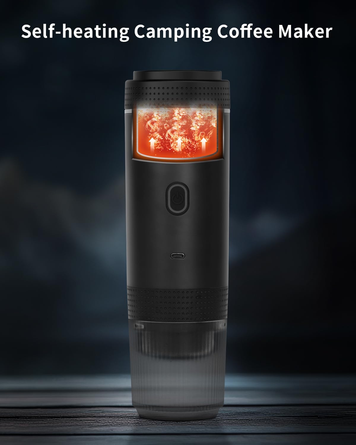 - Fast Self-Heating & Rich Crema: In just 3-5 minutes, the self-heating system heats 2.7oz of water from 76°F to 187°F, while the 20-bar pressure ensures smooth espresso extraction with a rich, velvety crema. Get professional-quality results in no time! 20 Bar Mini Small 5V Car Coffee Maker for Travel Camping