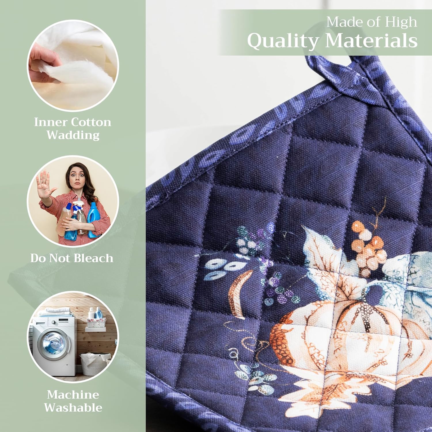 - 100% Quilted cotton: Made from premium quilted cotton, our pot holder ensures safe handling of hot pans or dishes. The soft, durable build provides excellent heat resistance and grip—perfect for everyday cooking and baking needs