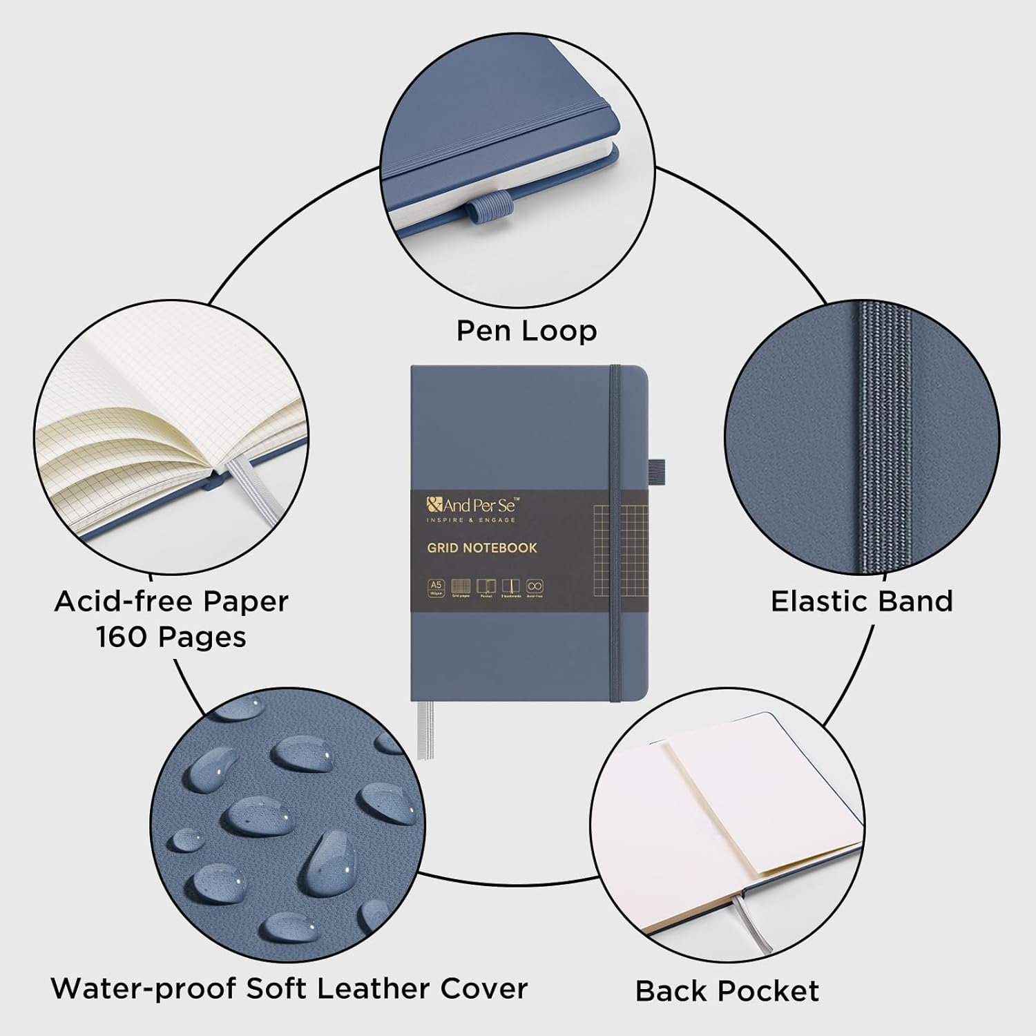 &And Per Se Graph Journal Notebook, 160 Pages, 5.7 x 8 inches College Ruled Thick Paper Notebook Journals for Writing, Grid Hardcover Notebook(1 Pack, Dark Blue)