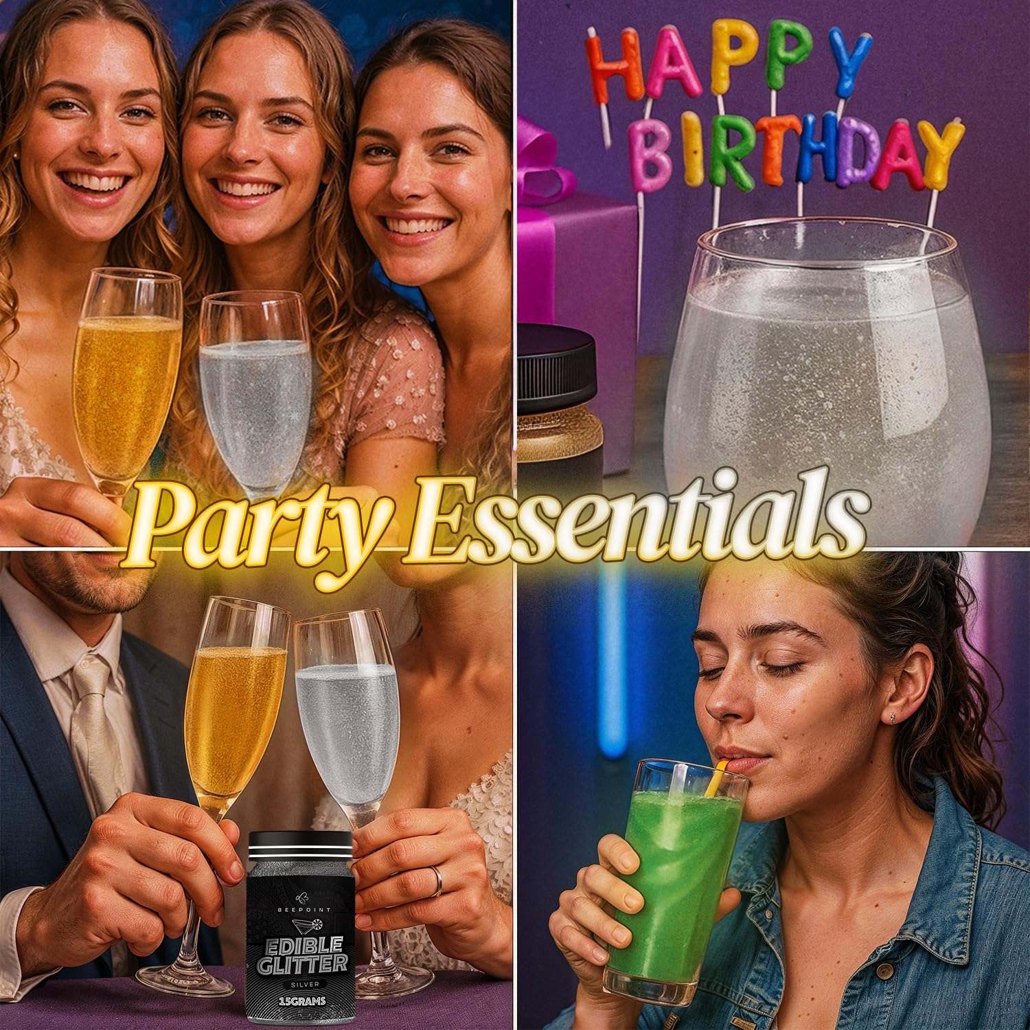 BeePoint Silver Edible Glitter for Drinks 15g - Food Grade, Vibrant Color Shimmer Powdered Dust for Drinks, Cocktails, Cake Decorating, Baking, Chocolates, Candy, Sweets, & Cookies - Vegan & Gluten Free