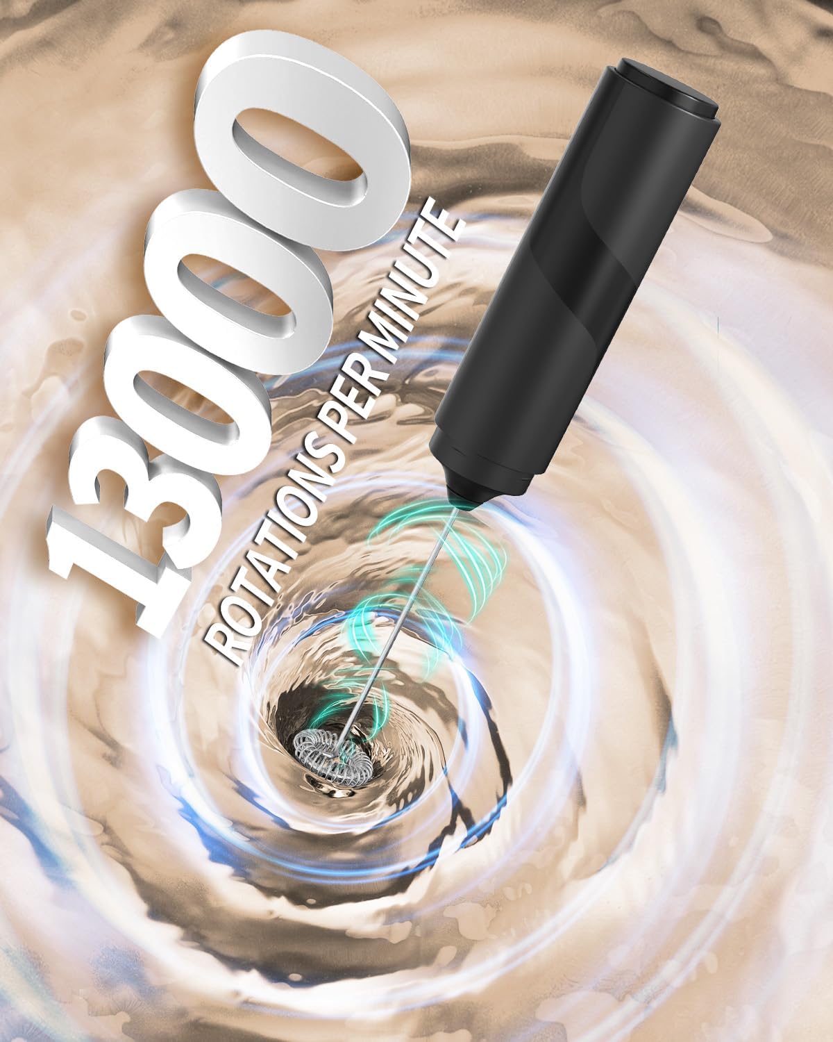 - CREAMY RICH FROTH IN SECONDS: Featuring a powerful motor, our super-quick handheld frother will whisk and create foam within 20 seconds. It is a perfect foam maker for coffee, latte, cappuccino, matcha, hot chocolate and any other frothed milk