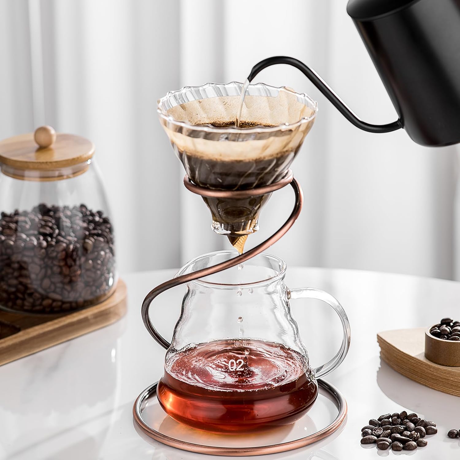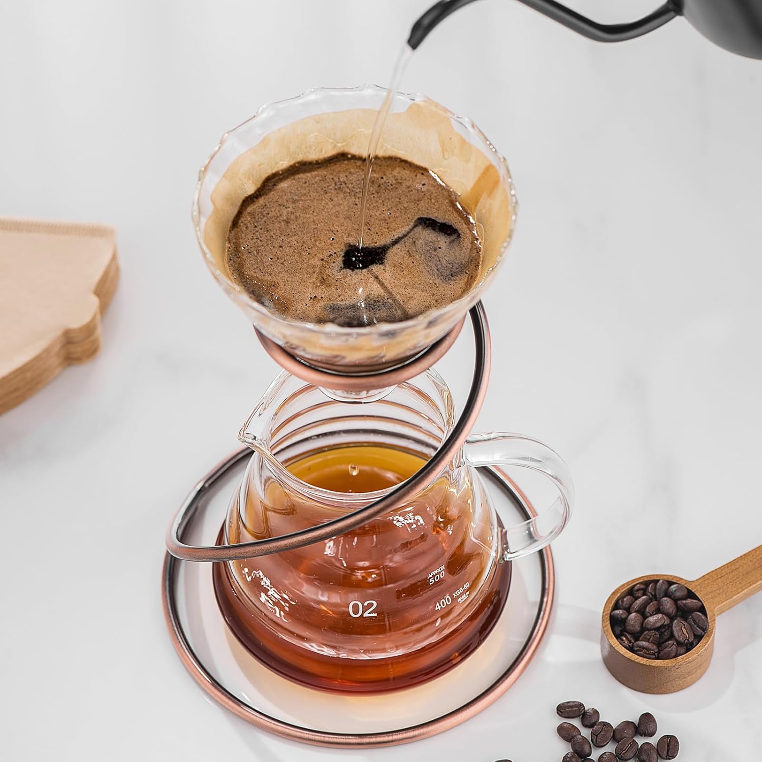- Sturdy Metal Stand: The spiral-structured metal stand is designed for durability and strength, ensuring it won't deform easily. Available in two stylish colors, including a vintage bronze finish with a unique gradient effect, it adds a touch of elegance to your brewing setup.