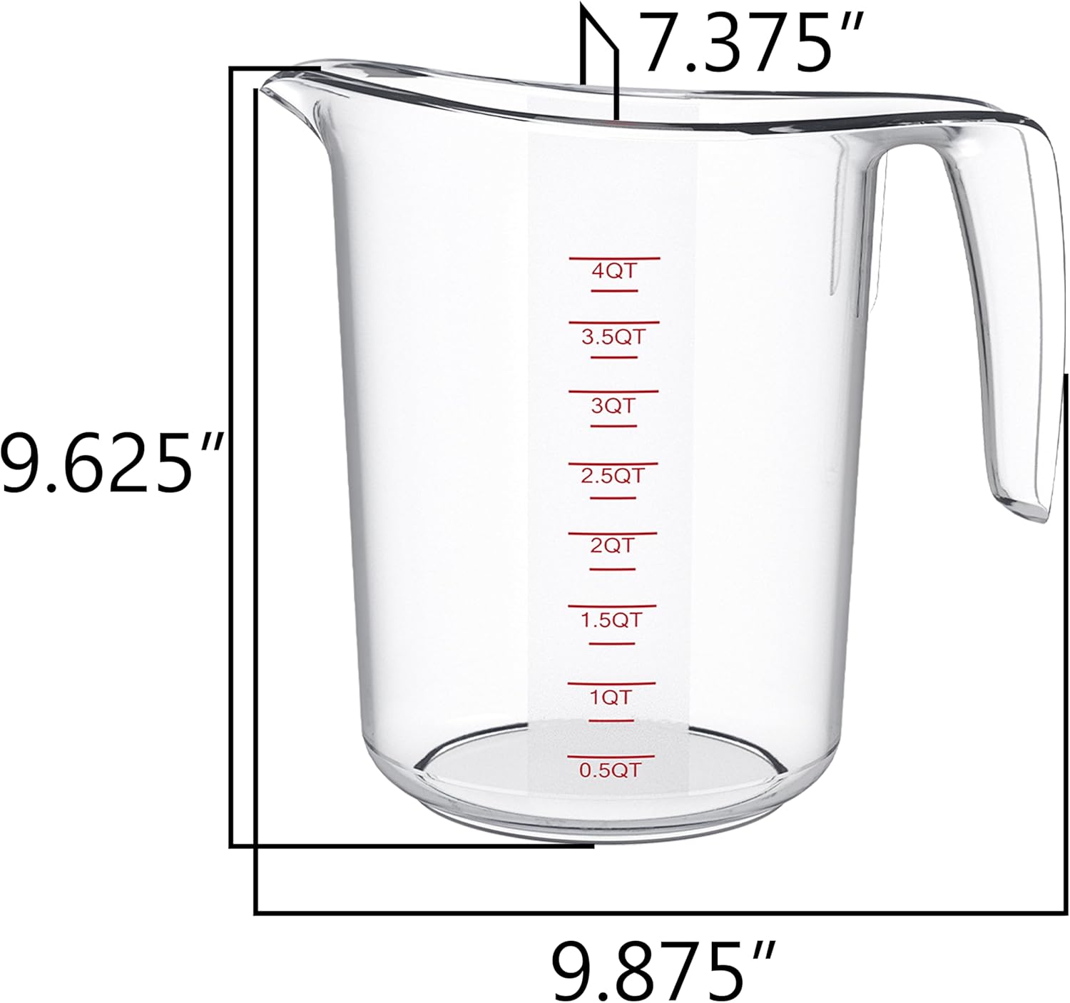 DaYammi Measuring Cups 4-Piece, Unbreakable Food-Grade Plastic Measuring Cup for Dishwasher, 16-Cup Liquid Measuring Cups for Prepping, Baking, Cooking, Readable Markings, 4-Quart/4L, Clear