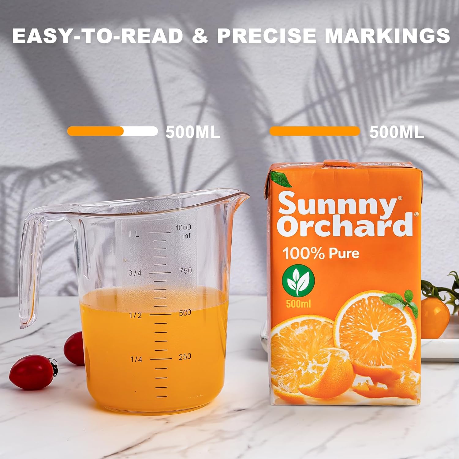 - EASY-TO-READ & PRECISE MARKINGS: Clear measuring cup set bold high-contrast markings in both cups, ounces, and milliliters ensure quick, accurate measuring at a glance—no squinting! Available in 1/2/4/8cup sizes to cover all your measuring needs