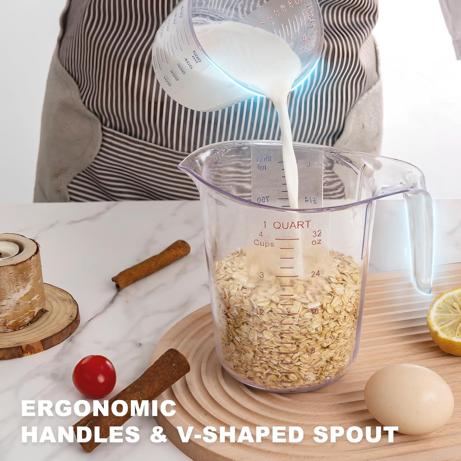 DaYammi Measuring Cups 4-Piece, Unbreakable Food-Grade Plastic Measuring Cup for Dishwasher, 1/2/4/8-Cup Nesting Liquid Measuring Cups for Prepping, Baking, Cooking, Readable Markings, Clear